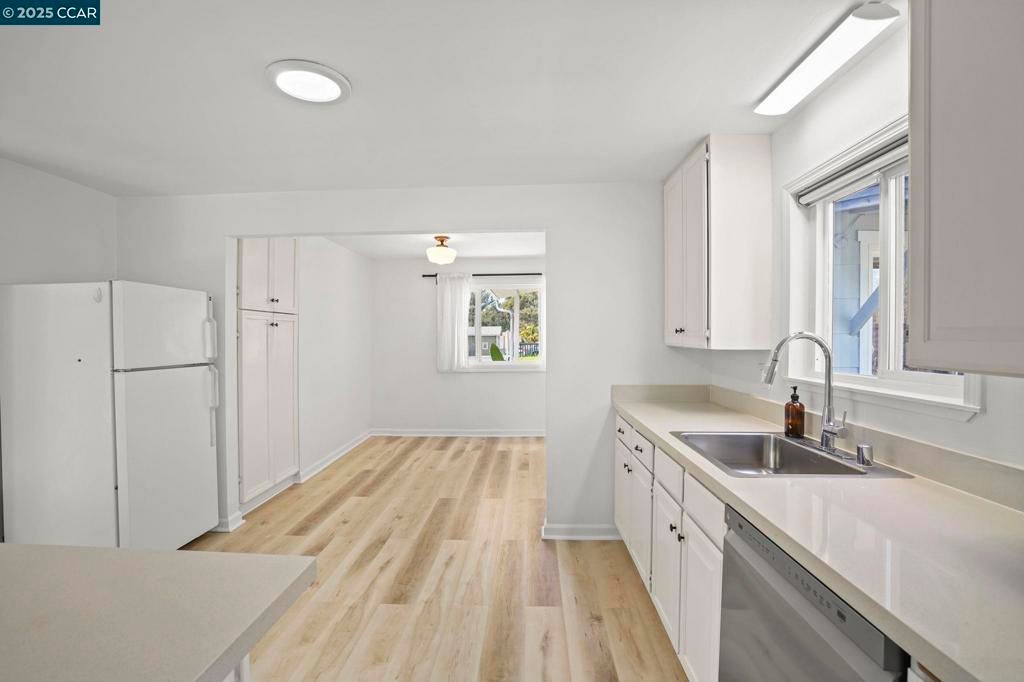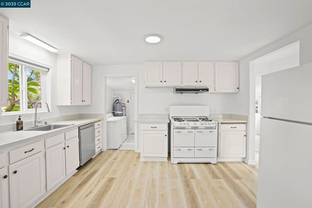 Large lot with ample potential to build ADU in front or rear of property. Dual Pane Windows, New Paint interior and exterior. Mini-Split AC unit in living room. New Laminate Flooring throughout + Tile flooring in Laundry room and Bathroom. Clawfoot tub in bathroom. Wedgewood Stove and refrigerator included in large open updated Kitchen. Washer and dryer included in laundry room. Storage shed in rear of property. Sewer Lateral Compliant. Close to schools, public transportation and shopping. Optimal Commute location to SF!