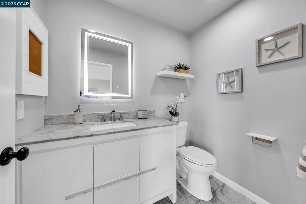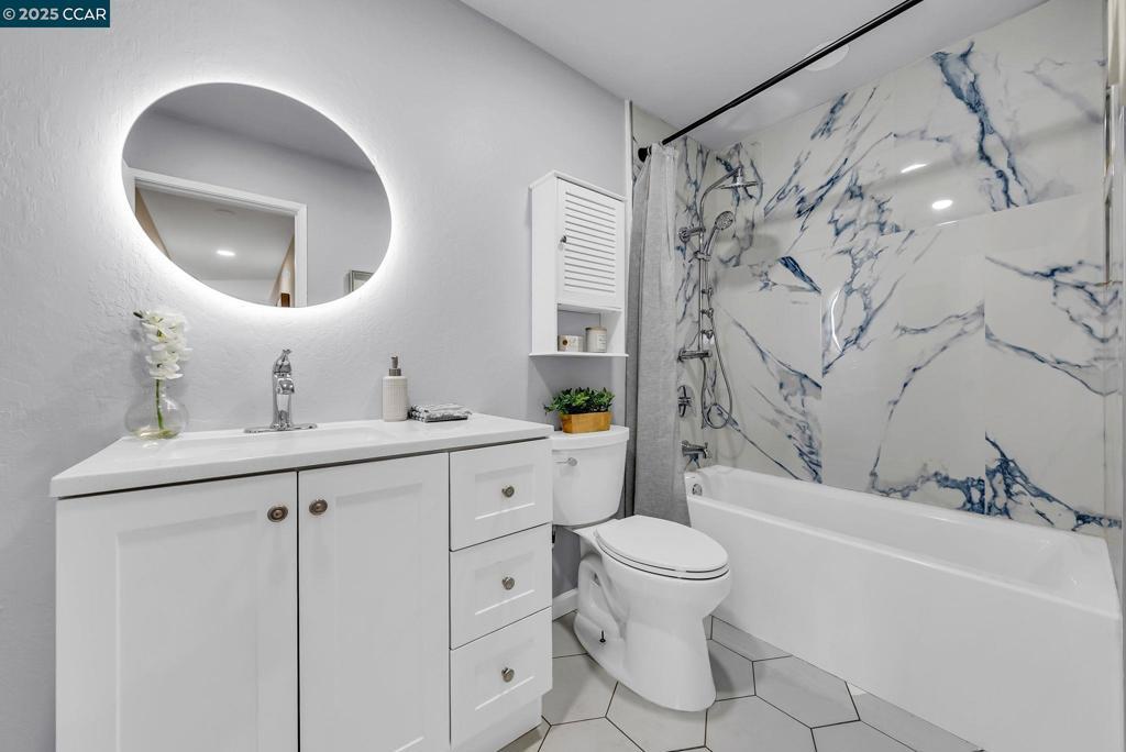 Beautifully updated 2-bed, 1.5-bath condo in the gated Saratoga Hills community. Recently renovated throughout, this move-in ready home features new luxury vinyl plank floors, fresh interior paint, new quartz countertops, stainless steel sink, new kitchen appliances, & bright open layout where the spacious living room connects seamlessly to dining area with convenient breakfast bar. Both bedrooms offer walk-in closets, while the bathrooms enjoy a luxury feel with modern vanities & LED-lit mirrors. Additional comforts include in-unit laundry, dedicated parking/storage. Residents enjoy secure gated entry, a sparkling pool, & a serene setting surrounded by mature landscaping. Perfectly located for commuters, with quick access to I-580 & I-238, just minutes from BART, making it easy to reach Oakland, San Francisco, or Silicon Valley. Everyday conveniences are close by, including Bayfair Center, local markets, restaurants, parks such as Don Castro Regional Recreation Area & Lake Chabot, & medical facilities like Kaiser Permanente San Leandro. Combining stylish upgrades with comfort, convenience, & community amenities, this condo is an ideal opportunity for buyers looking to enjoy modern living in a prime location. Welcome home!
