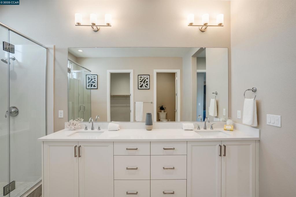 Welcome to Regency at Tracy Lakes, where luxury living takes center stage in this exceptional active adult 55+gated community. Three picturesque lakes, this vibrant community offers a fishing dock, 1-acre community garden and dog park. With a wealth of amenities, including a clubhouse, pools, cabanas, yoga studio, fitness center, bocce ball, and pickleball courts, every day is an opportunity for relaxation and recreation. The onsite lifestyle director ensures there’s always something to look forward to; from fitness classes to comedy shows and wine nights. This beautiful home is located near the community park. The professionally designed kitchen is a chef’s dream, featuring upgraded JennAir stainless steel appliances, Stonington Gray modern shaker style cabinetry, quartz countertops with designer tile backsplash, and luxury vinyl plank flooring. Bonus flex room add a sense of elegance and seclusion. Low-maintenance with HOA-maintained front yard landscaping. Elegant Toll Brothers craftsmanship, with 10-foot ceilings, 8-foot doors, 5 1/4" baseboards, dual-pane Anderson windows, Western stacking sliding doors, and modern energy-saving LED integrated recessed lights. (photos not of actual home, for marketing only, features and upgrades are different, same floor plan)