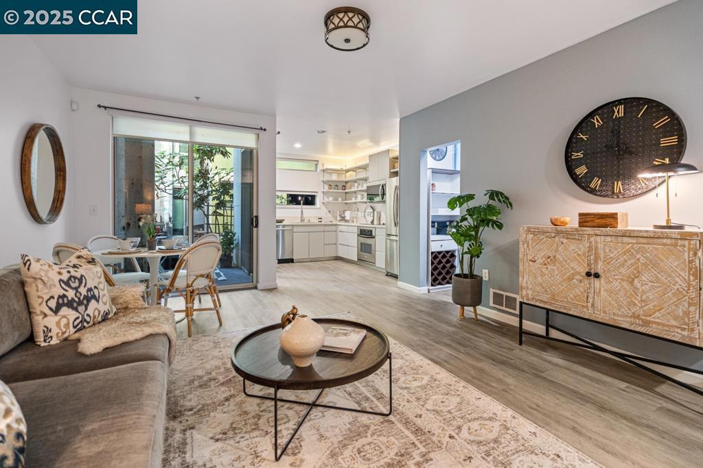 Welcome to your future love nest at 1201 Pine Street — an elegant, light-filled condominium that blends cosmopolitan style with intimate charm. Nestled in the celebrated Pacific Cannery Lofts, this 2009-built gem offers 1,153 sq ft of refined living, with 2 bedrooms, 2.5 baths, and a layout that feels both airy and intimately composed. Step inside and you’ll immediately sense the graceful balance of old-meets-new: generous windows usher in morning light, while thoughtful architectural touches echo the building’s industrial heritage. Two ensuite bedrooms mean comfort and privacy, while the half bath downstairs easily caters to guests. A modern, open kitchen flows into the living and dining areas — perfect for hosting friends or cozying up on a mellow evening. One covered parking and one open parking available. In-unit laundry, deep pantry storage, and elegant finishes round out the experience. There’s even a dog-wash station and dedicated bike storage, making it easy to embrace both city living and green escapes. Location? Simply magnetic. You’re in West Oakland’s vibrant corridor — close to BART, freeway access to San Francisco and the East Bay, and a variety of cafés, galleries, and eclectic eateries just steps away.