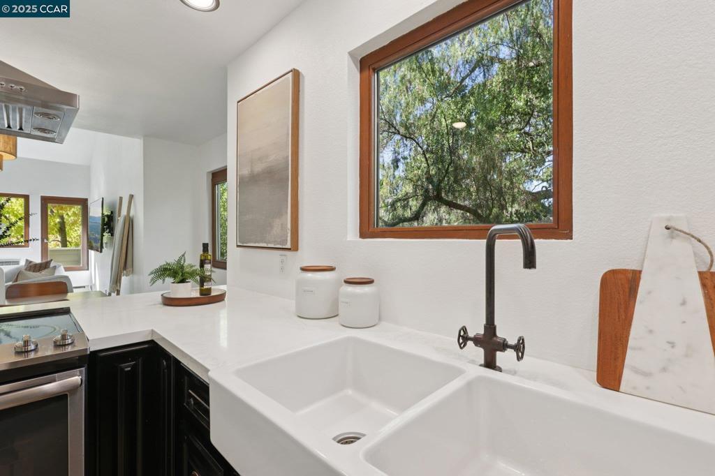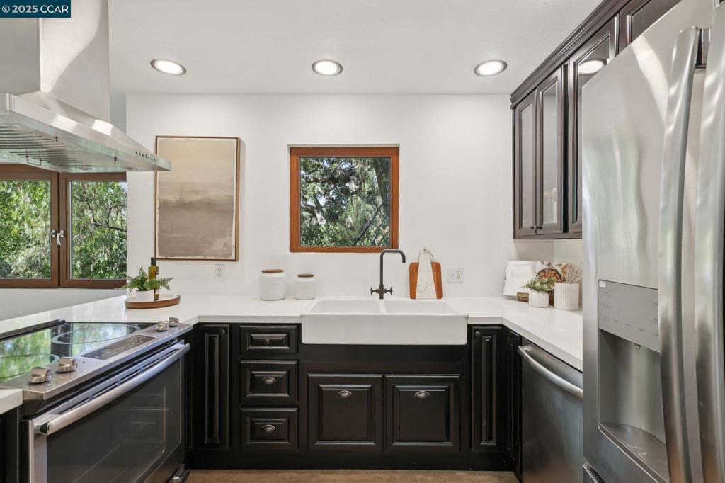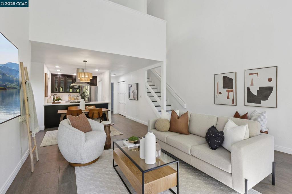 Wow, a second chance at this stunning home?! Imagine living in this exclusive retreat at the end of a cul-de-sac featuring soaring ceilings, windows with views to the majestic trees and peaceful landscape that has been tastefully remodeled from top to bottom! This end unit is filled with soft light and enjoys two ensuite bedrooms (or make one an office), with open floorplan, designer kitchen with quartz counters and stainless steel appliances and nearby laundry closet. You'll love sitting on the front patio adjacent to the greenbelt or relaxing on the balcony overlooking the trees with peek-a-boo views of Mt. Diablo. The designer bathrooms complete the feeling of escape as does the wooded pathways, swimming pool, picnic area, and basketball court in the complex. One-car garage and visitor parking at the end of a quiet cul-de-sac, yet near shopping, transportation, freeways, schools, hiking trails, and parks. This condo exemplifies dream living at its best!