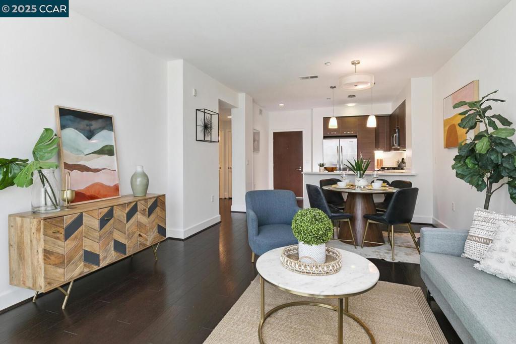 Experience Luxury Living in the Heart of Downtown Walnut Creek Discover modern sophistication in this spacious one-bedroom, one-bath condo, designed for comfort and style. The open floor plan features floor-to-ceiling windows, hardwood floors, and abundant natural light. A sleek chef’s kitchen showcases European cabinetry, stainless steel appliances, and elegant quartz countertops. The primary suite offers a walk-in closet and a private balcony overlooking the serene courtyard. Additional highlights include in-unit laundry with a front-load washer and dryer, one reserved parking space, and private storage in the secure underground garage. Enjoy upscale amenities, including a rooftop sky lounge with BBQs, a fireplace, and stunning Mt. Diablo views, along with a renovated fitness center, media room, and tranquil garden courtyard. With secure building access, two elevators, and an unbeatable location, this home perfectly blends urban convenience with modern comfort—just minutes from downtown dining, boutique shopping, hiking trails, top-rated schools, BART, and easy freeway access (HWY 24/680). Great value!