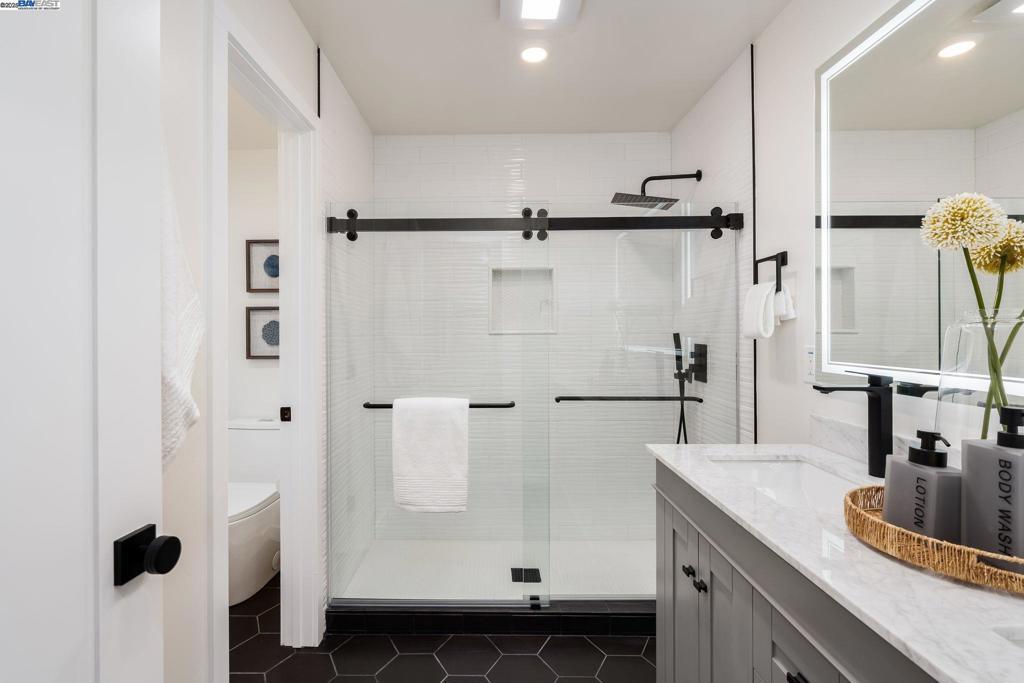 Welcome to a reimagined Walnut Creek residence where timeless character meets modern California living. Thoughtfully redesigned, this single-level home sits on a generous flat corner lot in one of the area’s most desirable neighborhoods. Light-filled living spaces feature wide-plank oak flooring, recessed lighting, and a cohesive modern aesthetic. The chef’s kitchen impresses with sleek white cabinetry, rich soapstone countertops, and high-end appliances. The primary suite offers a custom walk-in closet and a beautifully finished bath, while additional bedrooms provide versatility for family or guests. A detached office in the backyard mirrors the home’s design, offering the perfect space for remote work or creative pursuits. Outdoors, brand-new redwood fencing, fresh sod, and a custom pergola create an inviting setting for entertaining or relaxation. Conveniently located near Palos Verdes Shopping Center, top-rated schools, parks, trails, and freeway access.