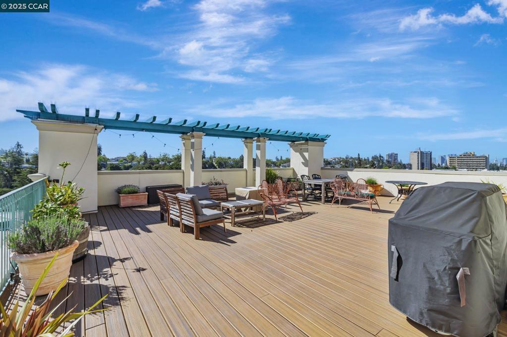 Modern Comfort in the Heart of Piedmont Avenue Welcome to Il Piemonte — a boutique 26-unit community wrapped around a serene, landscaped courtyard. This stylish one-bedroom condo combines contemporary design with unbeatable location. Step into a spacious great room with soaring ceilings, oversized windows that flood the space with natural light, and wide plank flooring throughout. The expanded, modern kitchen features quartz countertops, stainless steel appliances, and elegant glass-front cabinets — perfect for cooking at home or hosting friends. The quiet bedroom overlooks the courtyard and includes a generous walk-in closet. A secured, gated garage spot is included, with EV charging available for residents. Elevator access. Enjoy sunsets or weekend hangouts on the shared rooftop deck. Just outside your door, discover all the charm of Piedmont Avenue — from neighborhood favorites like Fentons and Piedmont Market to everyday essentials like Safeway and Starbucks, all within a short stroll. Whether you're commuting to UC Berkeley or Kaiser Oakland, this location makes it easy to get where you need to be — quickly and conveniently.