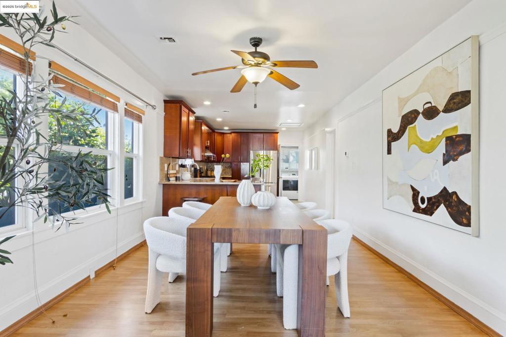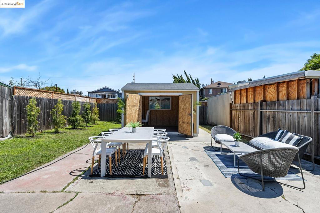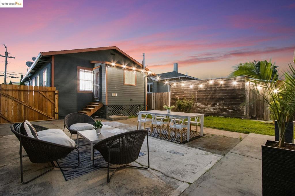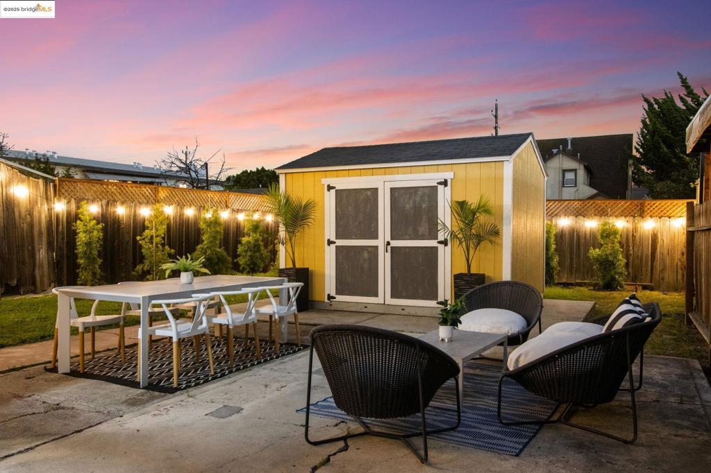Stylish comfort meets city convenience in this inviting 2-bedroom, 1-bath Oakland gem. The large modern kitchen, with plenty of space for a center island, is perfect for culinary creativity, while the refreshed bathroom adds a contemporary touch. Step outside to a spacious private backyard with string lights—ideal for gatherings, gardening, or quiet mornings with coffee. A sunlit shed with a window offers endless possibilities as a home office or art studio. With a Walk Score of 79, enjoy easy access to shops, dining, and all that Oakland has to offer.