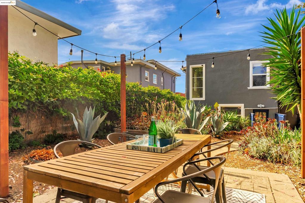 This lovely home is a NOBE gem!! Updated and charming, the functional floorplan has top floor open living and dining space, sunny updated kitchen with breakfast bar and stainless appliances, two generous bedrooms, and full bath. The lower level includes additional living room, half bath, laundry room, and large primary bedroom with walk in closet and beautiful en-suite bath! Outside, the fenced backyard is your own private escape - all set up for relaxation, container gardening, and entertaining with outdoor bar counter that doubles as a storage space! Additionally, you'll find attached garage (with EV charger!) for secure off-street parking, and an additional storage area. Fantastic NOBE location puts you near shops, dining, and amenities in Emeryville, Berkeley and Oakland, a number of public transport lines, as well as easy access to I-80 for quick commutes to SF. This home is not to be missed!