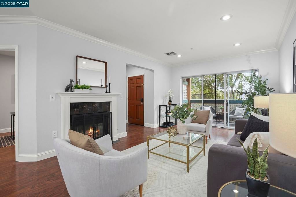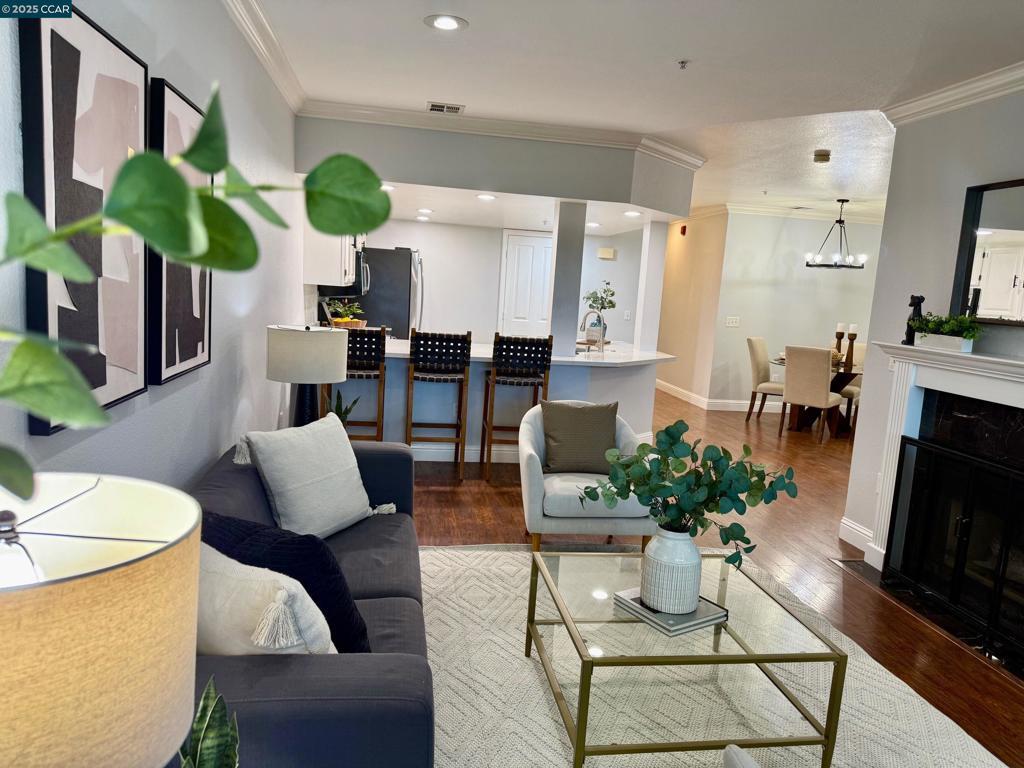 Large 3-bedroom condo, newly renovated inside. Move-in ready. 1357 sq ft of single-story living. Big rooms. Open concept floor plan! Open-concept floor plan, engineered hardwood floors, chunky crown molding, and High ceilings. New Kitchen quartz counter Top, Stainless steel Sink, Range, Fridge, Dishwasher & Microwave, Laundry hookup in laundry closet. A quiet location. Single story with no steps to entry! NO RENTAL RESTRICTIONS on this HOA Private Gated parking/ LOTS OF OPEN PUBLIC PARKING. Close to 680, 580, BART, Trails, Shopping, City Center entertainment, and minutes from San Ramon Valley Award-winning schools.