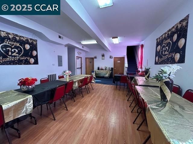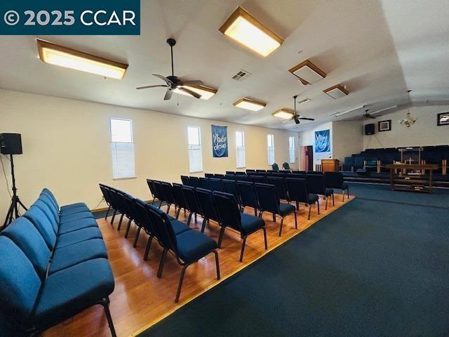 Currently used as a church, this spacious commercial building offers excellent potential for a variety of business or community uses. The property features five bathrooms, a dining room, full kitchen, multipurpose room, and two additional rooms adjacent to the pastor’s office, offering flexible options for offices, classrooms, or meeting spaces. The open sanctuary includes church pews, which will convey with the sale if used as a church. Central air and heat provide comfort throughout. Outside, there are four on-site parking spaces. Located in the beautiful City of San Pablo, surrounded by other active businesses and community facilities. Excellent opportunity for an owner-user or investor seeking a versatile property in a high-visibility area.