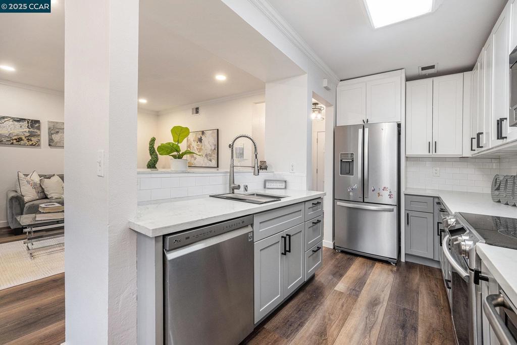 Beautifully Updated Walnut Forest Townhome. Stylish and light filled 2 bedroom, 2.5 bath home featuring an upgraded kitchen with stone countertops, stainless appliances, and white cabinetry. Large living area offers fresh paint, recessed lighting, dual sliders, and a cozy fireplace. Upstairs bedrooms are spacious with ample storage and modern finishes. Enjoy a private patio, plus community amenities including a pool, clubhouse, and Iron Horse Trail access. Conveniently located near top rated schools, The Livery, parks, shops, and freeway access.