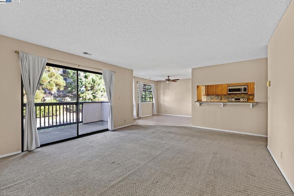 Get that vacation/resort feeling in your own home! Upper-level Mesa Verde condo with detached 1 car garage and no neighbors above unit. Gated community with many amenities: 5 pools, gym, clubhouse, tennis courts & clubhouse. Unit is well kept and features granite counters in kitchen. All appliances including stack washer & dryer/ 2nd bedroom has bayed windows. Primary bedroom has mirrored closets and adjoining main bath. Spacious living room with fireplace and slider to balcony. 2 dining areas (breakfast bar and dinette area) HOA covers exterior maintenance, water and garbage. Great location near 580/238 corridor, Downtown shopping and dining, BART and Lake Chabot. Unit is virtually staged. FHA financing available.