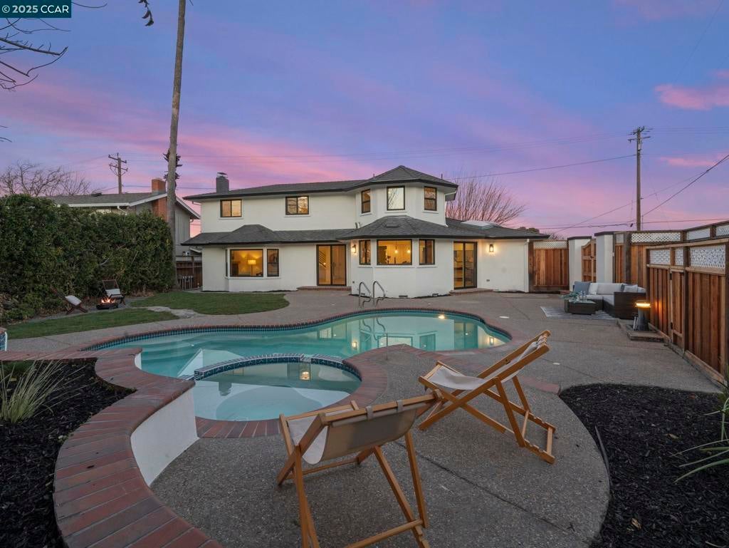 Welcome to your dream modern farmhouse, recently renovated and nestled in the desirable West Dublin area. This East-facing home boasts an expansive 2,000 square foot open floor plan that invites abundant natural light. The living room, warm and welcoming with its cozy fireplace, seamlessly connects to a kitchen/dining area graced by skylights. Culinary enthusiasts will delight in the kitchen, equipped with sleek European cabinets, a convenient pot filler, island surrounded w/ bar stools, and top-of-the-line stainless steel appliances. This lovely home offers versatile living with a primary bedroom on the first floor, featuring two closets, and an optional primary suite upstairs, adding flexibility to your living arrangements. The upstairs includes three additional bedrooms and a bathroom. Step outside to a flat backyard, where the in-ground pool and spa promise endless summers of fun and relaxation. The space is perfect for hosting gatherings, with plenty of room for everyone to enjoy. Located in a tranquil neighborhood. Beyond the confines of this idyllic residence, the community features top-notch schools, easy access to the major freeways, and is mere minutes from shopping centers, hospitals, and recreational facilities. Don’t let this opportunity pass by!
