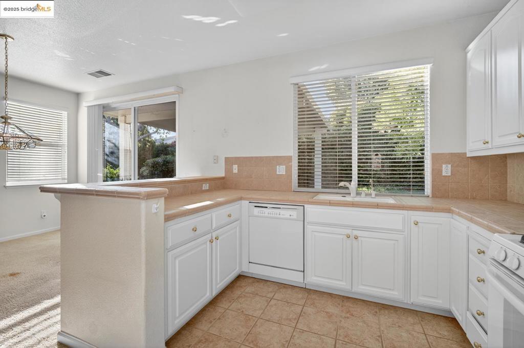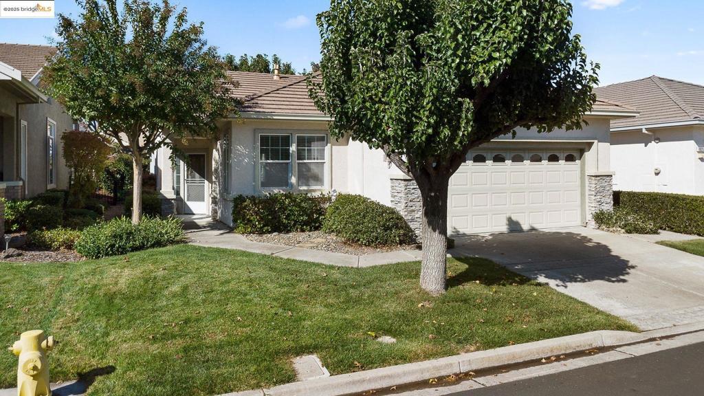 Rare court location in this highly sought-after 55+ community! This charming single-story checks all the boxes with great curb appeal, rock accents, and a beautifully groomed front yard. Enjoy the added convenience of extra guest parking right in the court! Step into a cozy and inviting layout offering 2 bedrooms, 2 bathrooms, and 1,364 sq. ft. of bright, naturally lit living space. The open kitchen flows nicely into the family and dining rooms and features a full tile backsplash, pantry, and a stunning glass-accent front door for a stylish first impression. The primary suite includes a bay window for added space and light, dual sinks, a step-in shower with glass walls, and a generously sized walk-in closet. Outside, relax in your private backyard surrounded by lush greenery perfect for morning coffee or quiet evenings. Additional highlights include a separate laundry room with sink and added storage cabinets in the garage. Don’t miss this wonderful opportunity to live in a peaceful court setting that’s truly hard to find!
