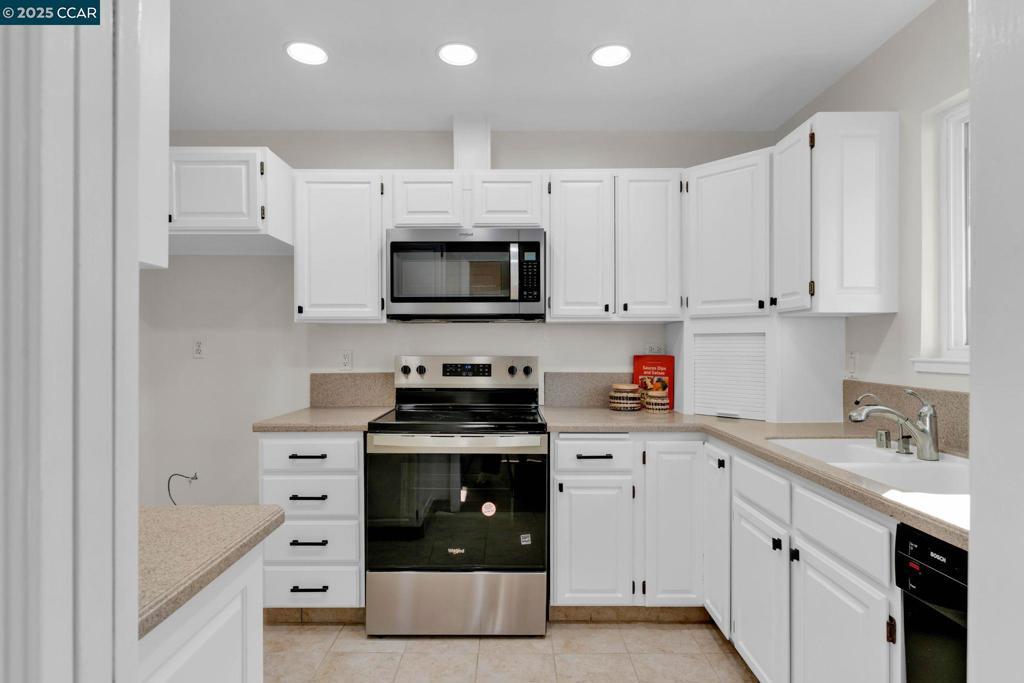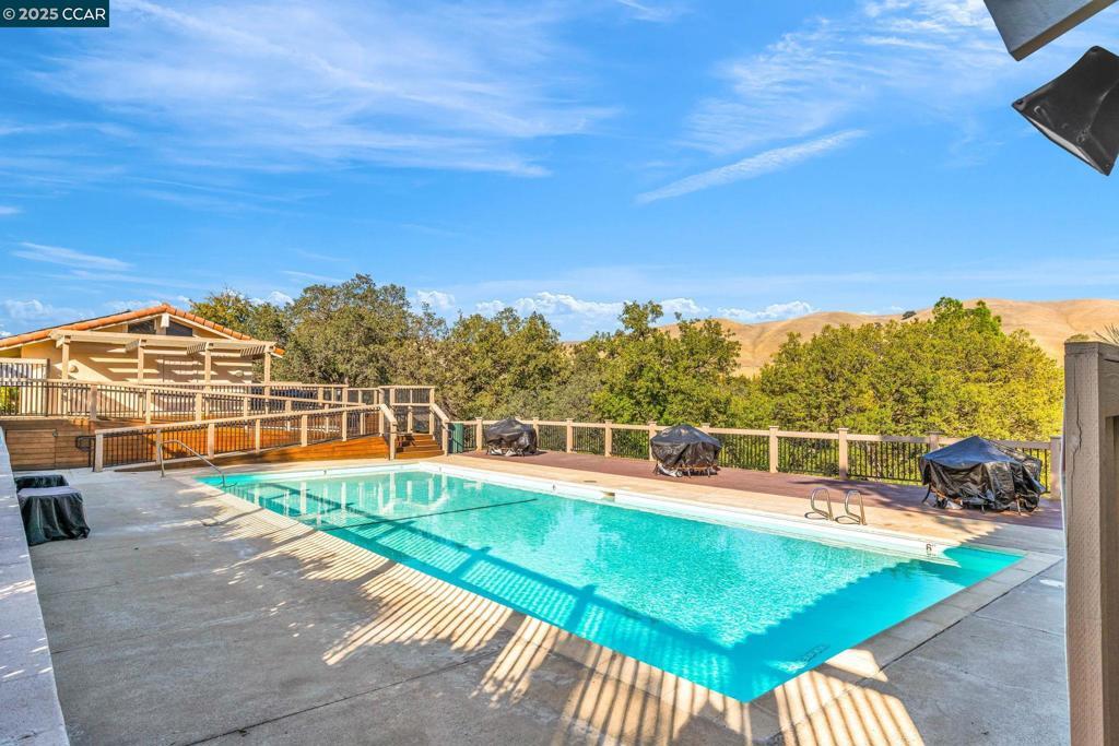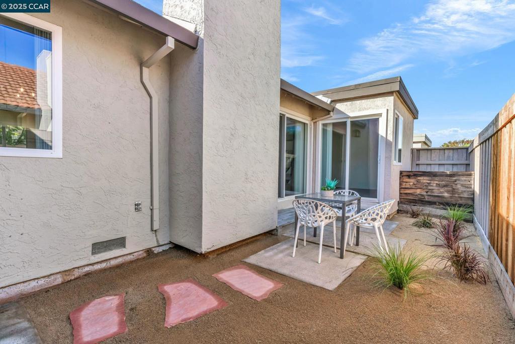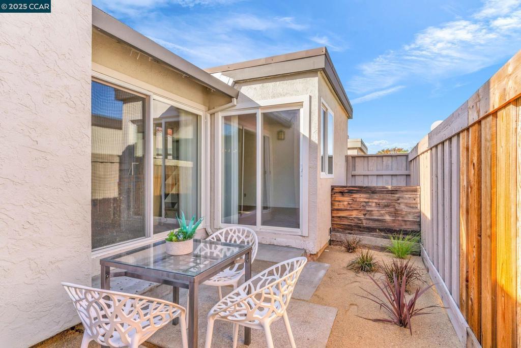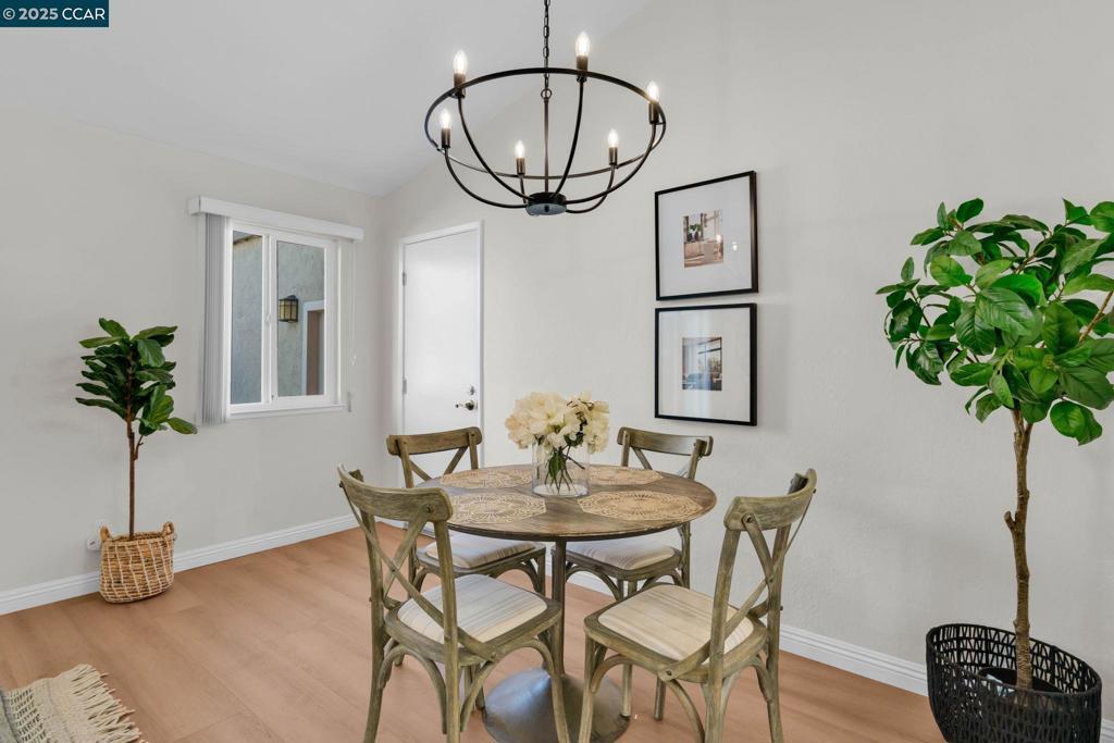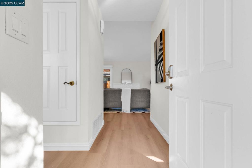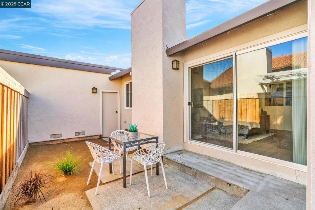 Spectacular single story end unit brimming with style and sophistication! Coveted neighborhood with a stunning surround of stunning Mt Diablo views! Splashed in natural light with vaulted ceilings, the spacious living room offers a cozy wood burning fireplace, new laminate flooring, new light fixtures, and walls of windows looking out to the sunny patio. Kitchen features include white cabinetry, solid surface counters, stainless steel appliances and designer black hardware. The primary bedroom is a tranquil retreat featuring vaulted ceilings, ample closet space and sliding French doors open to the quiet back patio. An updated bathroom has a newer vanity, stall shower and newer hardware and fixtures. A convenient office/3rd bedroom is situated in the middle of the unit and looks out to the quiet front courtyard. The attached two car garage is spacious and has laundry hook ups and storage space. Sunny and tranquil, the back patio is perfect for entertaining or romantic and elegant meals al fresco. This sought after location offers stunning views of Mt. Diablo and is just steps to the picturesque community swimming pool, scenic trails, and convenient proximity to charming downtown shopping and restaurants.
