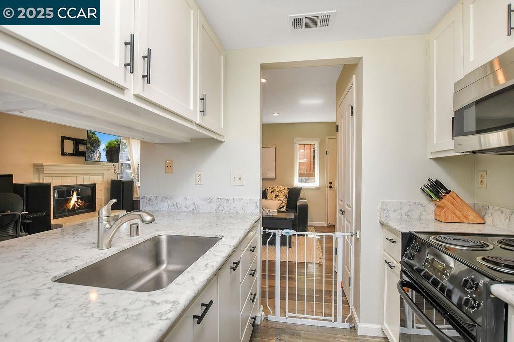 Welcome to this charming first-floor end unit in the beautiful Shadow Wood community! This 2-bedroom, 2-bathroom home offers a serene setting surrounded by mature trees, creating a peaceful retreat. Step inside to a spacious living room featuring a cozy wood-burning fireplace, perfect for relaxing evenings. The galley-style kitchen boasts a convenient breakfast counter with additional storage, seamlessly flowing into the dining area—ideal for entertaining. Large pantry/storage closet. Spacious Primary with Large closet. Enjoy the convenience of inside laundry with a stackable washer and dryer & dual-pane windows. Relax on your patio & enjoy your coffee on a peaceful morning with gate access to walkways. You'll have access to fantastic amenities, including a pool, spa, tennis courts, and clubhouse. Centrally located just minutes from shopping, dining, BART, and freeway access, this home offers both comfort and convenience. Some images in this listing have been virtually staged to help illustrate potential furniture placement and design concepts. Actual property conditions may vary. Open Sunday 12/21 1:30-4PM