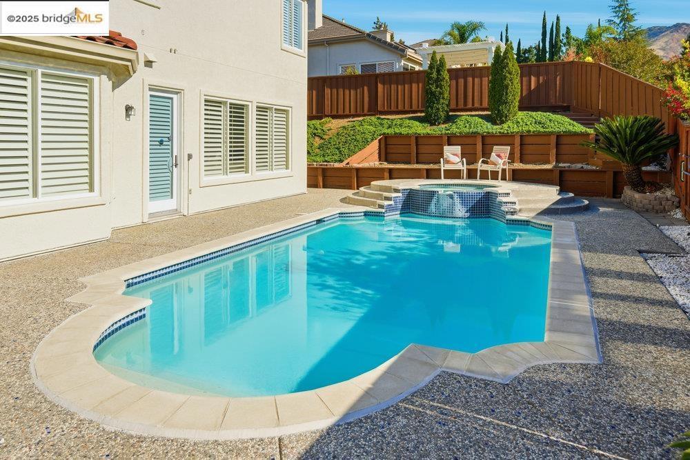 This stunning, two-story, corner lot home nestled in the highly coveted Crystyl Ranch community offers refined living. A formal living room with high ceilings and a fireplace welcomes you, flowing seamlessly into the formal dining area and inviting family room — perfect for both entertaining and everyday living. A chef’s kitchen with center-island layout, built-in appliances, breakfast nook, pantry, and abundant storage — ideal for meal prep and casual dining. Upstairs awaits a luxurious master retreat—complete with a generous bedroom offering space for a sitting area or home office, a relaxing fireplace, a private balcony for morning coffee, and a spa-inspired en suite bath. On the ground level, a private bedroom with its own en suite bath—along with a nearby half bath provides an ideal space for guests, in-laws, or a home office. The remaining bedrooms are bright and well proportioned. The family room fireplace offers warmth and ambiance for cozy evenings. The plantation shutters add a touch of elegance and class to the space. Step outside to your private outdoor sanctuary, where mature landscaping surrounds a sparkling swimming pool and hot tub in a beautifully low-maintenance setting. The community offers access to Clubhouse, tennis courts, community pool and much more.