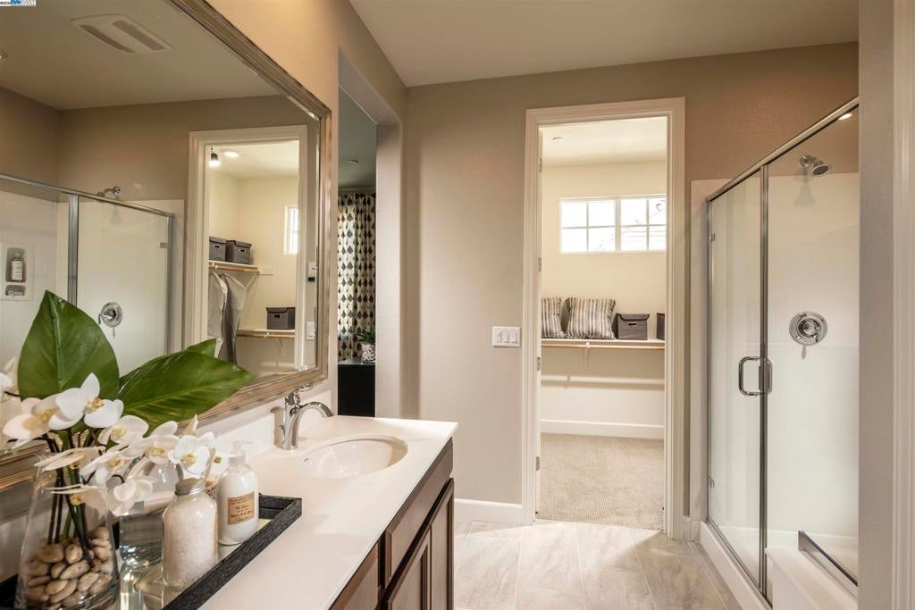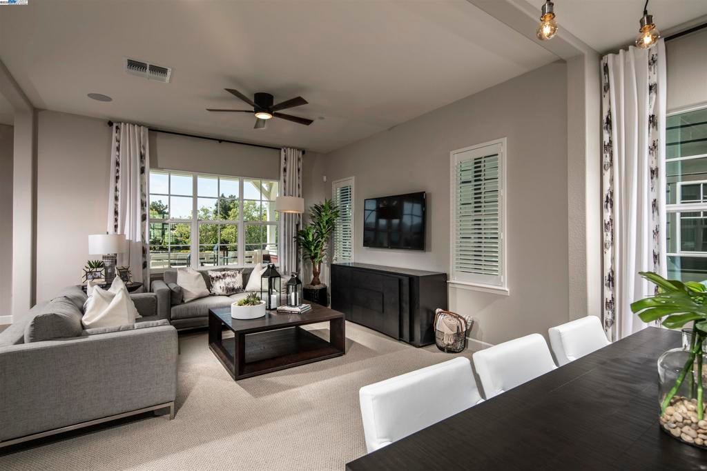 FURNISHED 4 Bedroom 3.5 Bath; Two-car garage; 2402 SF ; 3 stories; Model Home located in the Homestead at Irby Ranch in Pleasanton. Walking distance to Downtown! FURNISHED New Luxury Designer Model Home. Located in Pleasanton walking distance from Downtown. The Homestead at Irby Ranch, a new community of 87 detached homes, offers a mix of suburban charm and urban convenience. Light and bright, Award-winning floorplan with deck off main living area. Full bedroom and bath at ground level. Furnished model including all designer upgrades. Significant Upgraded Designer Finishes; Modern Kitchen. Beautiful Ceasar stone Quartz Countertops with designer backsplash; Stainless Appliances; Refrigerator and Washer Dryer Included; Designer Selected Flooring; Upgraded Lighting; Custom Plantation Shutters and draperies. Energy efficient design. Live in your dream home! Great Community Facilities including park with play structure and BBQs. Close to schools. PUSD Schools rank in the top 10 within the state and among the highest in national surveys. Pleasanton's small-town charm and rich culture, the community is just minutes from shopping, dining, entertainment and first-class schools.