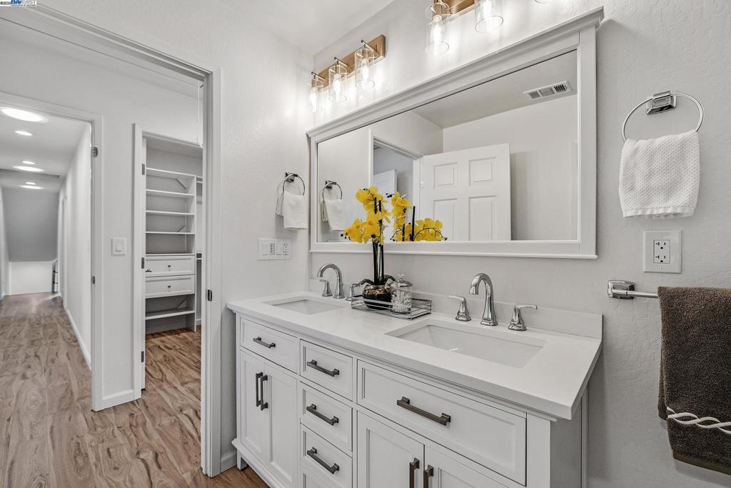 Freshly updated and beautifully appointed, this home offers the perfect blend of style and functionality. Soaring ceilings, new wide-plank flooring, and abundant natural light create inviting open living spaces. The remodeled kitchen features quartz counters, stainless steel appliances, custom cabinetry, and a double oven, flowing seamlessly into the dining and family rooms. A convenient downstairs bedroom and full bath add flexibility, while a bonus room offers space for an office, workshop, or craft area. Upstairs, the spacious primary suite impresses with vaulted ceilings and a stunning ensuite bath. With a 3-car garage, new finishes throughout, and a private backyard surrounded by mature trees, this move-in-ready home combines modern comfort with Pleasanton charm—just minutes from downtown, parks, trails, and award-winning schools.