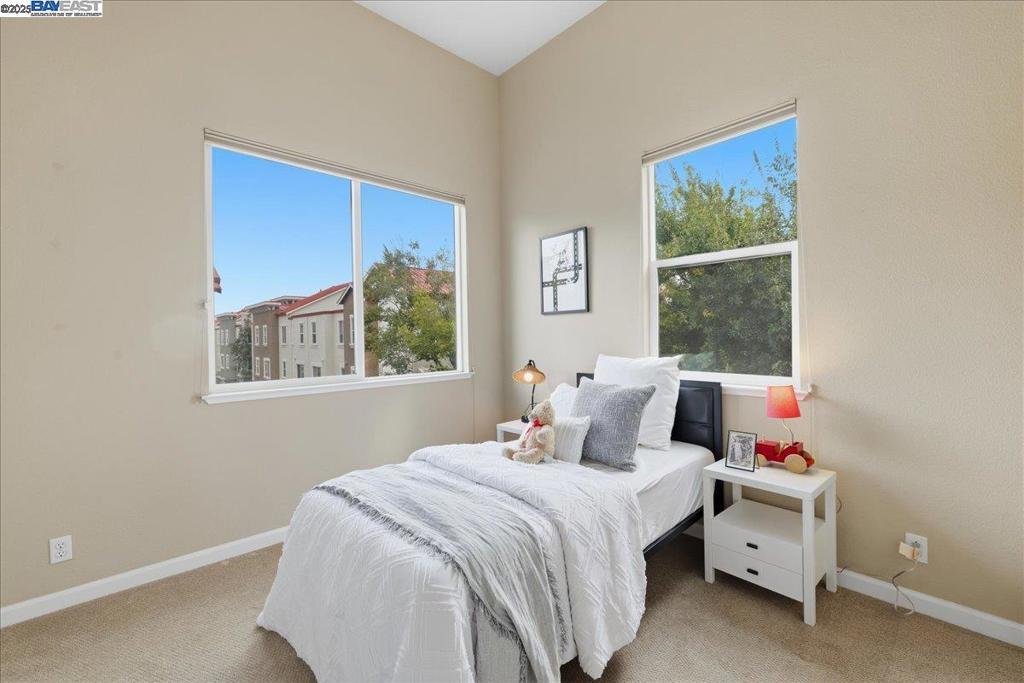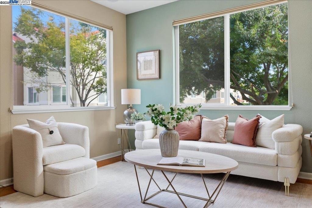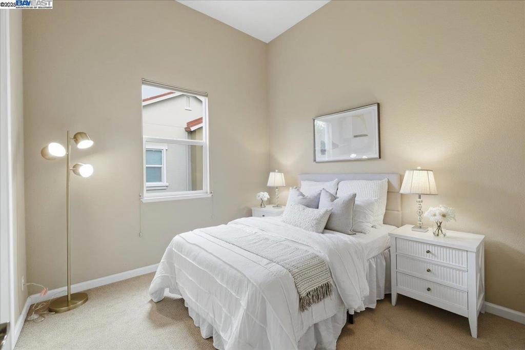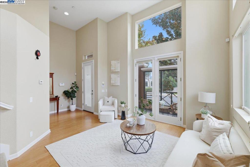 Discovering this gorgeous townhome sits on a corner lot and has walls of windows providing a lot of natural light. As you enter, you'll be greeted with a large living room with French doors out to a front patio area. The modern open floor plan with soaring 12' tall ceilings! This 1923 sq ft space home has three bedrooms, two and a half bathrooms. This home features upgraded baseboards, premium bathrooms, and surround sound in the family room. The kitchen provides a large walk-in pantry, slab granite countertops, stainless appliances and opens to the family room creating an open concept living space. The master suite has large windows and a huge walk-in closet, sure to delight any buyer. The master bathroom features dual vanity sinks, a walk-in shower and soaking tub. Located in the highly desirable Tralee Village, residents will enjoy access to a community pool and park, as well as nearby amenities such as shopping centers, libraries, and sports parks. Commuters will appreciate the direct access to the 580/680 and the convenience of being within walking/biking distance of the Dublin/Pleasanton BART station. HOA covers general area, exterior, and roof maintenance, ensuring worry-free living. Top-rated Dublin school district. Don't miss out on this wonderful home before it's gone!