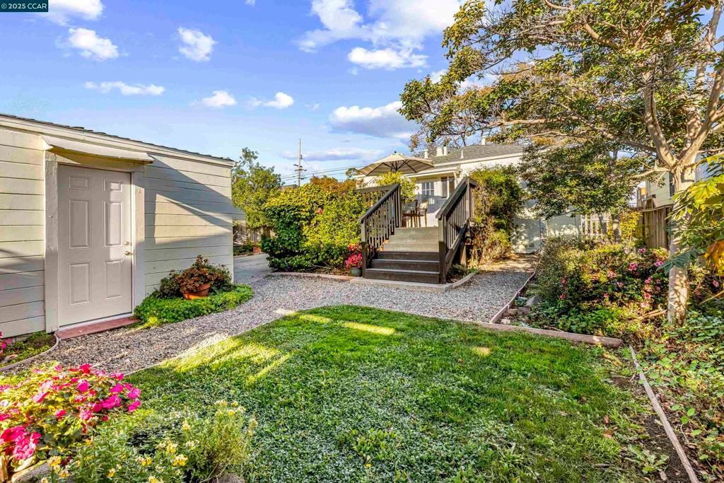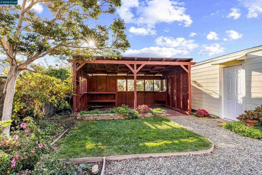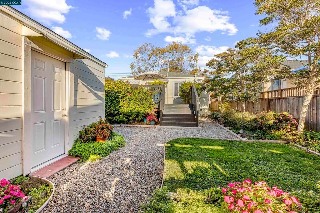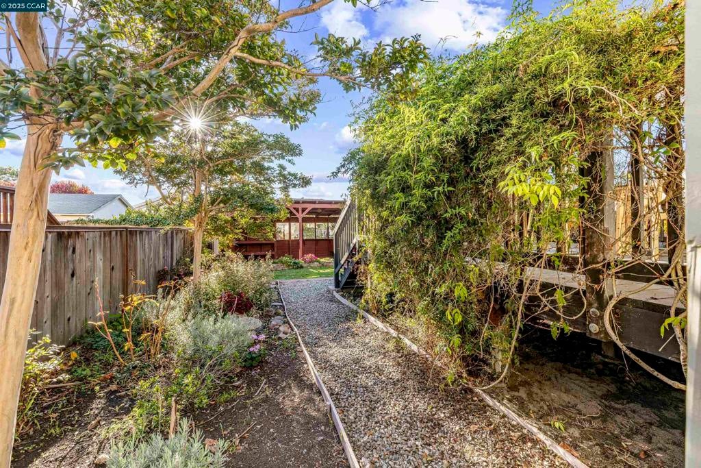 Welcome to this inviting two-bedroom home located conveniently in the heart of El Cerrito. Step inside to a spacious, light-filled living room centered around a cozy fireplace perfect for relaxing or entertaining. The kitchen features granite countertops and a lovely view of the sunny backyard, while the adjacent laundry room adds everyday convenience. Enjoy outdoor living on the large deck overlooking a beautifully landscaped yard filled with a variety of colorful trees and flora. A long driveway provides ample space for boat or RV parking, and the detached two-car garage offers extra storage and versatility. There’s also an open-air work area or flex space ideal for creative projects or a home workshop. Close to shopping, schools, parks, and freeway access, this property blends comfort, functionality, and a touch of nature.