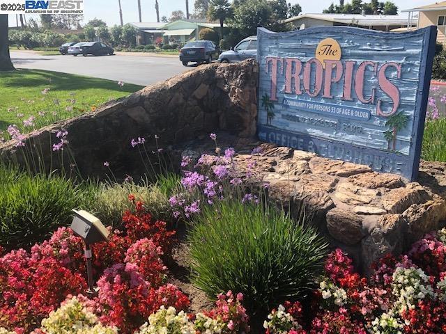 Affordable Mobile Home in the Tropics (adult park) features: 2 bedrooms; 2 full baths; updated kitchen with granite countertops, stainless steel appliances, and newer cabinets; separate living and family rooms; dining area with built in hutch; primary suite with private bath; tiled flooring in kitchen; laminate flooring in living room & family room; indoor laundry with front loader washer & dryer; dual pane windows; 2 storage sheds; near guest parking & more. Fireplaces: NO