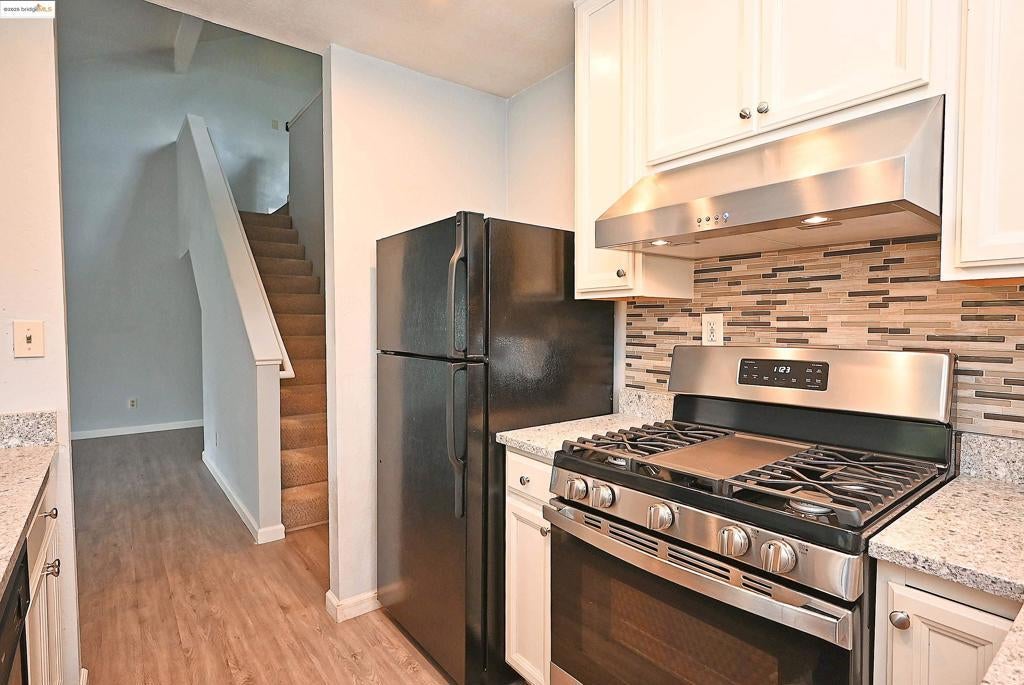 Nestled in the charming city of MARTINEZ, CA, discover the attractive residence awaiting at 648 Fig Tree Lane. This residential property is presented in great condition, offering a wonderful opportunity. The living room presents an inviting atmosphere, where the high ceiling, vaulted ceiling, brand new wall to waland beamed ceiling create an airy and expansive feel; the fireplace adds a touch of warmth and character, promising cozy evenings and memorable gatherings. The kitchen is thoughtfully designed with both style and functionality in mind, featuring stone countertops and shaker cabinets that offer a blend of modern elegance and timeless appeal; the backsplash provides a beautiful accent, while the kitchen peninsula offers a practical space for meal preparation and casual dining. The bathroom features a tiled walk in shower, creating a spa-like experience, complemented by a double vanity, offering convenience and a touch of luxury. Enjoy outdoor living with the balcony, patio, and pergola, perfect for relaxation or entertaining; the fenced backyard provides a private oasis, while the community hot tub offers a wonderful amenity for unwinding. This property presents a unique opportunity to embrace comfortable living with its attractive features.