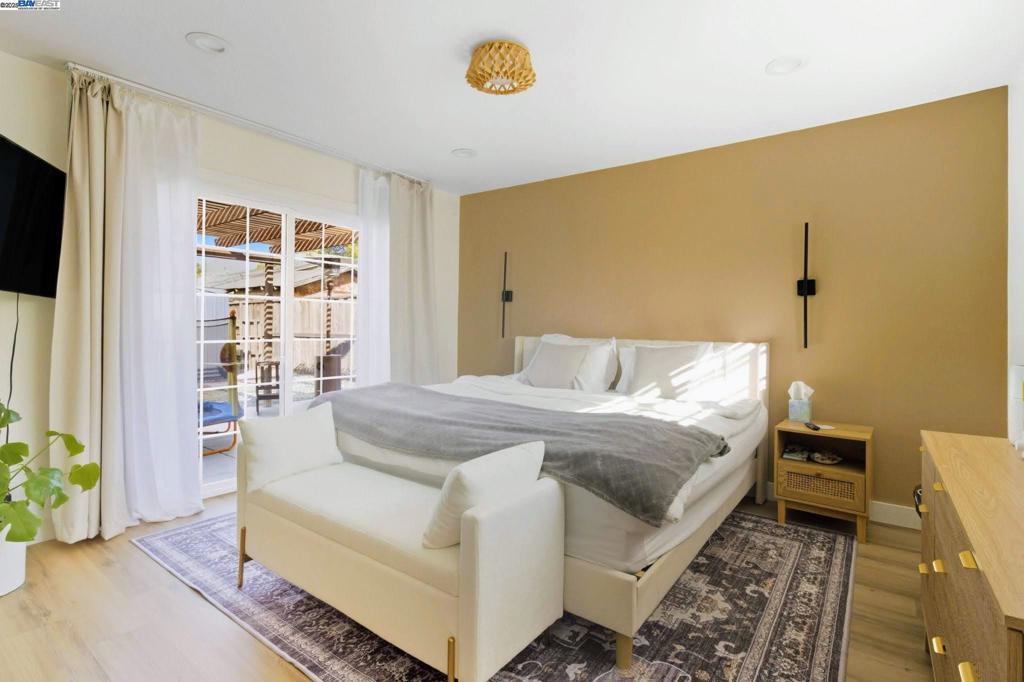 Beautifully updated home with stunning recent upgrades! Enjoy a brand-new kitchen featuring quartz countertops, stainless-steel appliances, and a premium Wolf 4-burner range. The home boasts new laminate flooring throughout, newer dual-pane windows, new doors, updated bathroom, and designer lighting. Additional highlights include a new roof and gutters, fresh front-yard sod, and central air conditioning. The finished garage, currently used as an office, provides flexible living space. Side patio off the kitchen is perfect for entertaining, with an added storage unit out back. Conveniently located within walking distance to schools, downtown, parks, shopping, and restaurants. Easy commuter access to Hwy 84 and 580. A must-see move-in ready home!