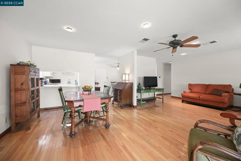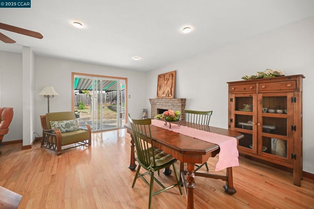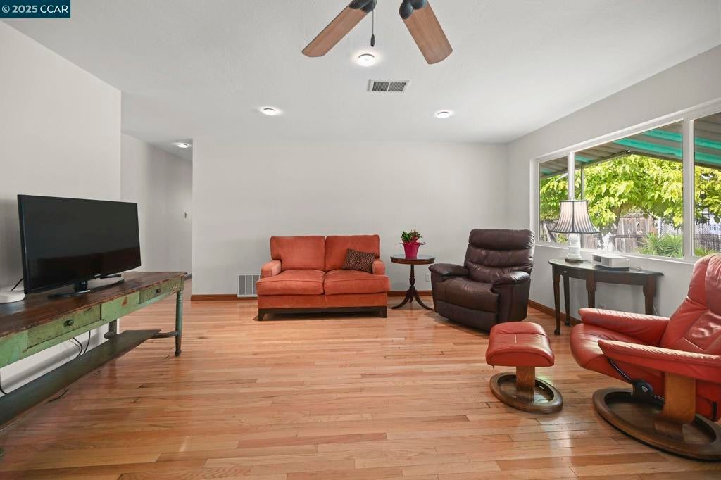 Welcome home to the highly sought-after State Streets neighborhood in the Clayton Valley Highlands. This four-bedroom, two-bath home on a large corner lot is full of charm and potential. Step through the welcoming foyer and into the open living and dining rooms, where natural light, hardwood floors, recessed lighting, and a cozy wood-burning fireplace create the perfect setting for everything from homework nights to holiday celebrations. The eat-in kitchen features a garden window, new flooring, and a generous pantry, offering a great canvas to add your own style and updates. Four bedrooms with hardwood floors and ample closet space, along with two full baths, provide room for all plus flexibility for a home office, guest room, or workout space. Both bathrooms have been updated, including heated floors in the hall bath and a jetted tub in the primary suite. Sliding doors from both the family room and primary bedroom open to a large, flat backyard with endless possibilities for RV parking, an ADU, a swimming pool, or simply a great outdoor space to gather with friends and family. Energy-efficient features include dual-pane windows and central AC. All this moments from parks, walking trails, popular schools, shopping, and commute corridors. Welcome home!