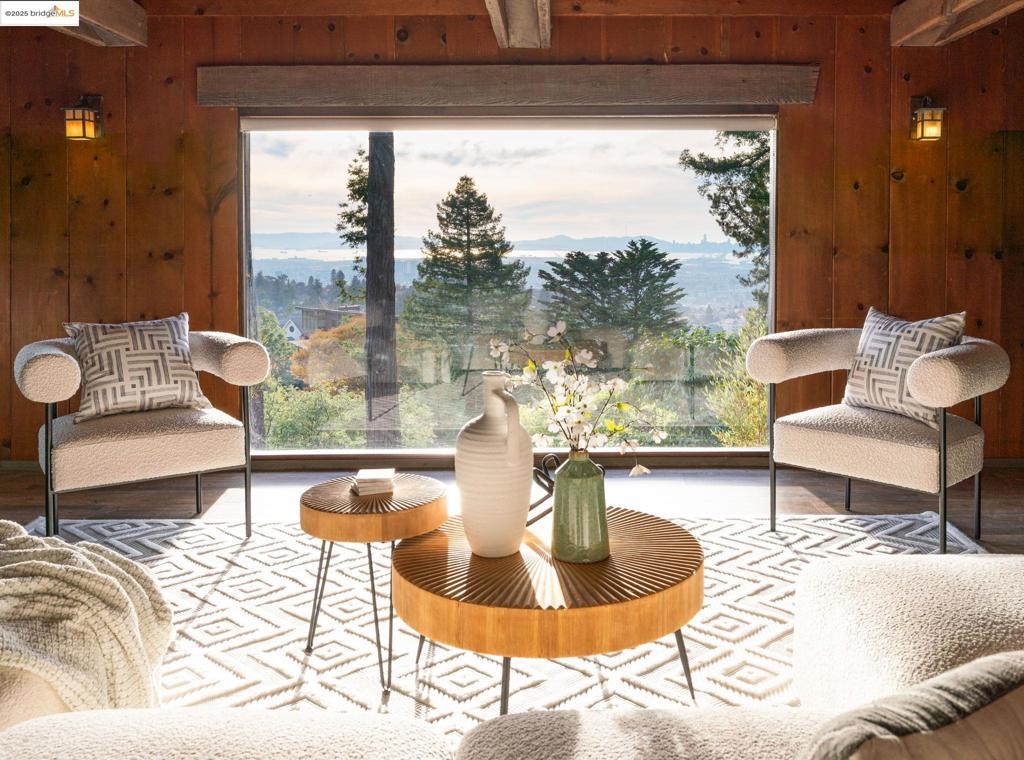 Nestled in the heart of Montclair, this whimsical storybook home feels like a dream come to life. Set on an expansive lot with lush, mature landscaping, it offers a sense of privacy and serenity rarely found. Meandering garden paths lead to sun-dappled sitting areas and multiple decks perfectly positioned to capture the glimmer of the bay and the distant San Francisco skyline. Each outdoor space invites quiet reflection, conversation, or starlit evenings surrounded by nature’s embrace. Inside, the home delights at every turn with its cozy alcoves, charming built-ins, and a fanciful brick fireplace in the spacious living room with picture-perfect bay views. The uniquely updated kitchen and baths blend modern artistry with timeless elegance—stylish yet warmly inviting, each space crafted with an eye for detail and design. A separate bonus area with its own entrance adds a touch of intrigue, featuring a kitchen, bath, and three additional rooms that live like a private retreat—ideal for guests, creative work, or simply a place to dream. From sunrise coffee on the deck to twilight gatherings beneath the trees, this Montclair haven invites you to slow down, breathe deeply, and live your own modern fairytale among the gardens and the view-filled skies.