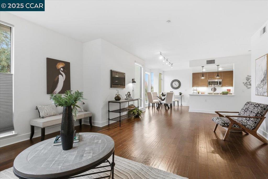 Don’t miss this modern 1 bed, 1.5 bath end-unit condo in the desirable 555 Ygnacio building—just two blocks from BART and downtown Walnut Creek. This bright home offers floor-to-ceiling windows, a contemporary open layout, a spacious primary bedroom with en-suite bath, a sleek kitchen with stainless steel appliances, and a full-size in-unit washer/dryer. Seller also installed an HOA-approved EV charging setup in their designated parking space. Enjoy premium amenities including the SkyDeck Lounge with BBQs and stunning Mt. Diablo views, a state-of-the-art gym, media room, private storage, secured underground parking, and two elevators. Steps to Broadway Plaza, hiking trails, top-rated schools, and easy access to Hwy 24/680. Modern living and unbeatable convenience—right in the heart of Walnut Creek.