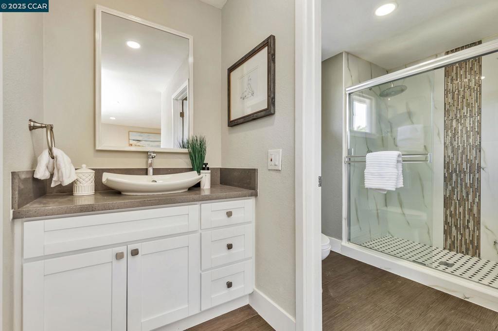 Comfort and modern elegance! Located in one of San Ramon’s most desirable neighborhoods, Twin Creeks, this home offers both style and sophistication. Beautifully updated, the bright and open floor plan is complimented by high ceilings and stunning upgraded finishes throughout. The cozy fireplace in the living room adds warmth and luxury —perfect for quiet evenings. The remodeled kitchen features stainless steel appliances, large farm house sink, spacious pantry, and lots of counter space—ideal for everyday living and entertaining. Entertain with style at the elegantly designed wine and coffee bar in the family room. All bathrooms have been updated, creating a spa-like retreat. Walk through the sliding glass doors off the kitchen to an expansive deck, seamlessly connecting indoor and outdoor living. Step outside to a spacious, low-maintenance backyard complete with pergola and plenty of room to relax or entertain. Additional upgrades include newer flooring, updated lighting, and enhanced interior details such as new doors and banisters. Just minutes from freeway access, shopping and dining The Lot City Center, beautiful community parks, and top rated K-12 schools. This is Twin Creeks living at its best!