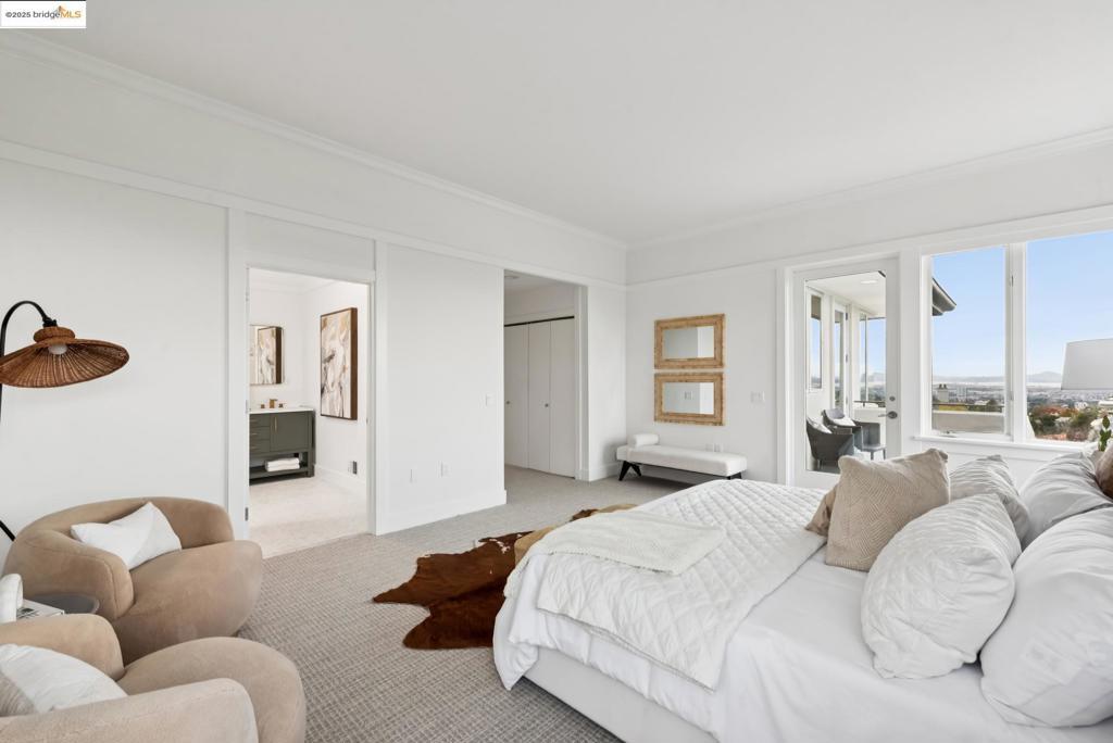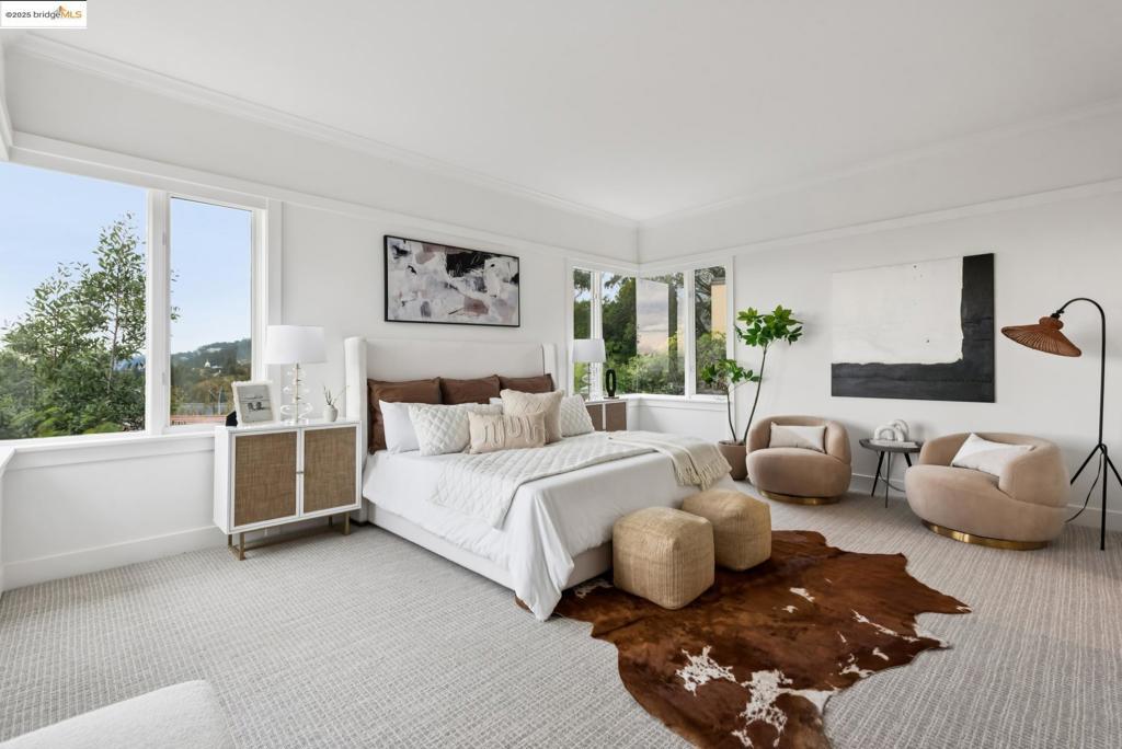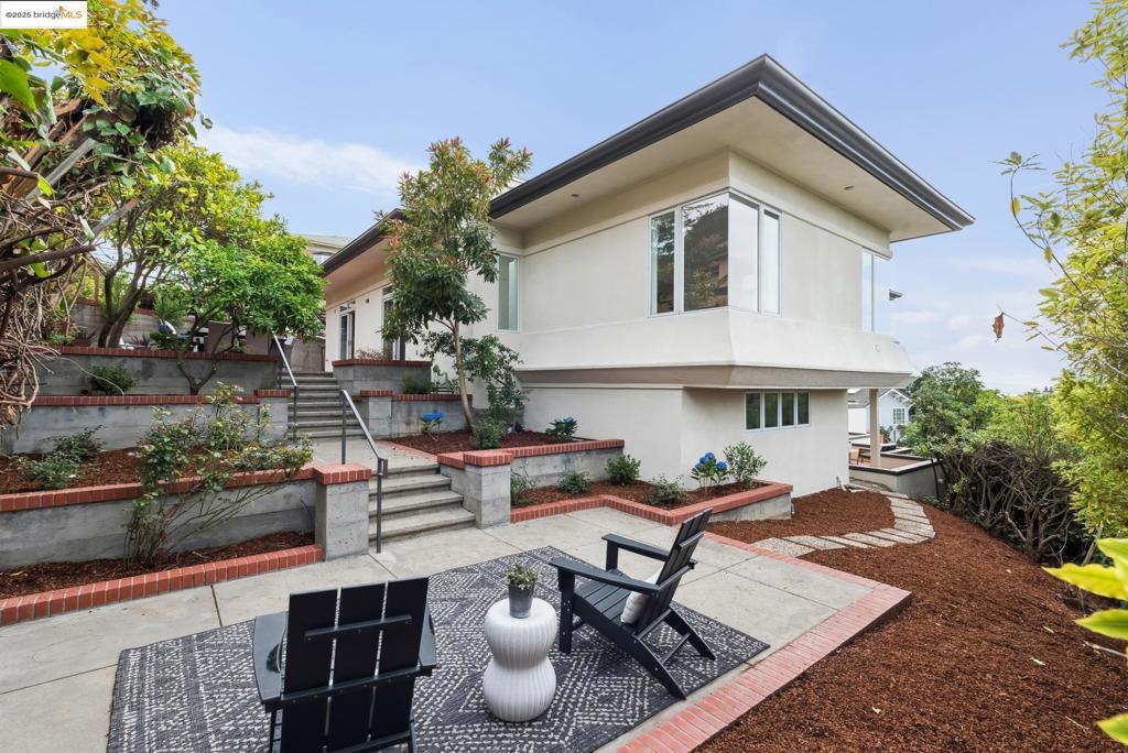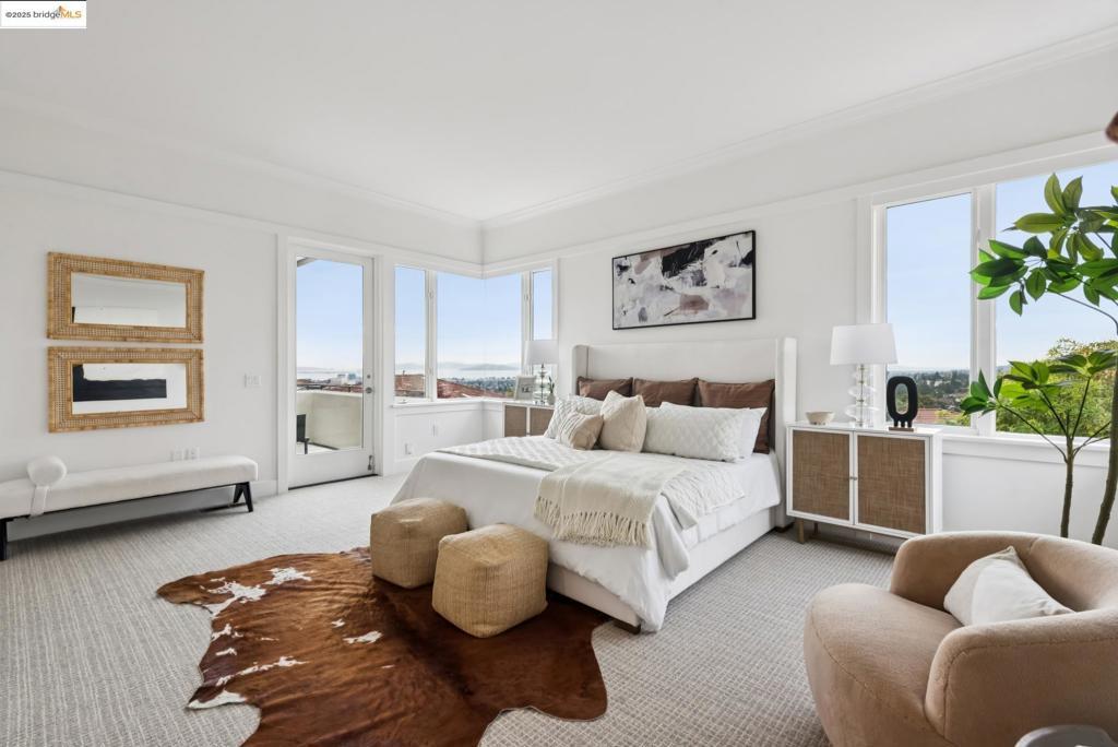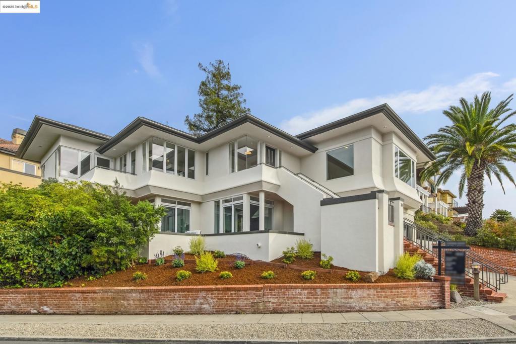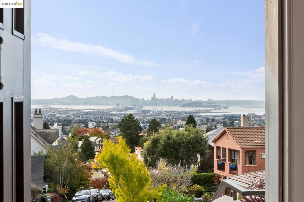 Perched in coveted Upper Rockridge, this contemporary home offers stunning panoramic views of the Bay and Berkeley Hills. The main level welcomes you with a gracious foyer and convenient elevator, opening to a spacious living room framed by expansive windows and breathtaking views. The large dining room and open, updated kitchen create a natural flow for entertaining. The primary suite features a brand-new spa-like bath, with two additional bedrooms and baths, laundry, and a powder room completing this level. A serene patio offers a private outdoor escape or ideal home office access. Downstairs, a separate suite with a generous family room, bedroom and bath provide flexible living space—perfect for guests, an au pair, or an in-law suite—with its own exterior entrance. A large garage with ample storage adds convenience and versatility. Ideally located near Rockridge shopping, dining, BART and top commuter options, this home combines style, comfort, and location in one exceptional package. Views: Downtown