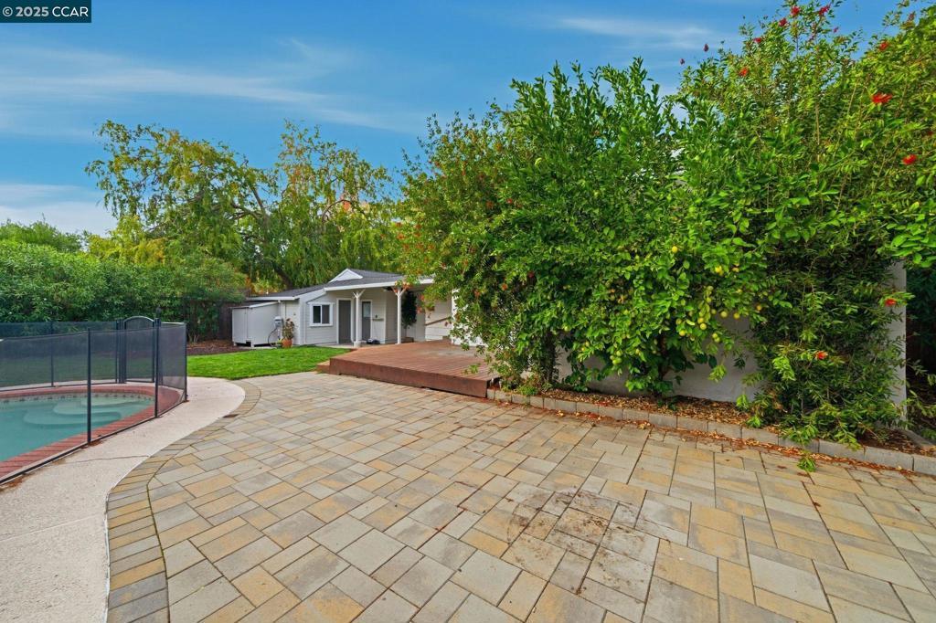 Nestled on just under a ¼-acre lot, this fully fenced ranch-style retreat offers two bedrooms, two bathrooms, and approximately 1,276 square feet of inviting, light-filled living space. With private gate access and lush outdoor surroundings, this home is equal parts comfort, style, and sanctuary. Enter into a spacious open layout where natural light pours through large windows. The living and dining areas connect seamlessly to the kitchen — featuring granite counters, stainless steel appliances, and a gas range — creating the ideal space for cooking, entertaining, or simply relaxing at home. The primary suite is a true escape, complete with a sliding glass door that opens to the backyard’s beautiful landscaping and pool area — your own private retreat at the end of the day. Both bathrooms have been tastefully updated with modern finishes and timeless design. Outside, enjoy resort-style living with a sparkling pool, multiple lounging patios, and mature trees that create a sense of privacy and tranquility. The detached two-car garage and versatile flex space offer endless opportunities for a home office, gym, or creative studio. Ideally situated in an established neighborhood just minutes from downtown Pleasant Hill, BART, parks, trails, and schools.