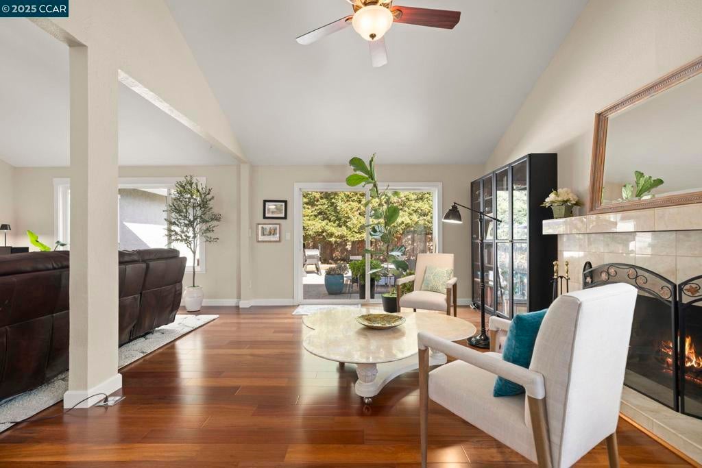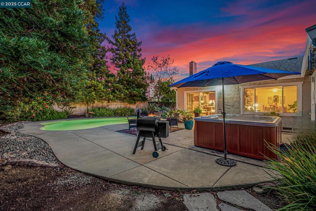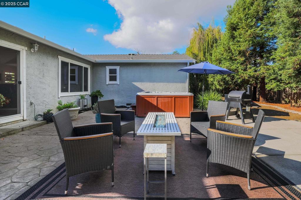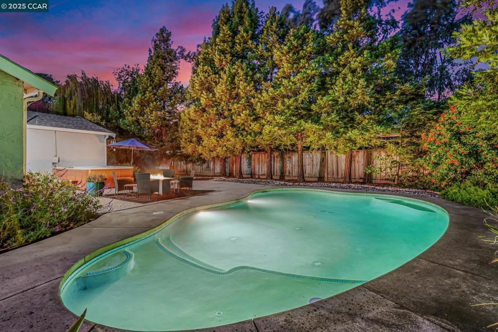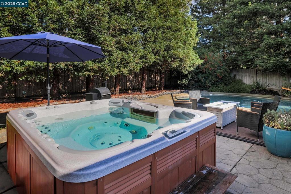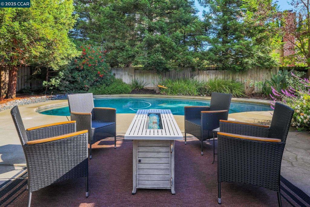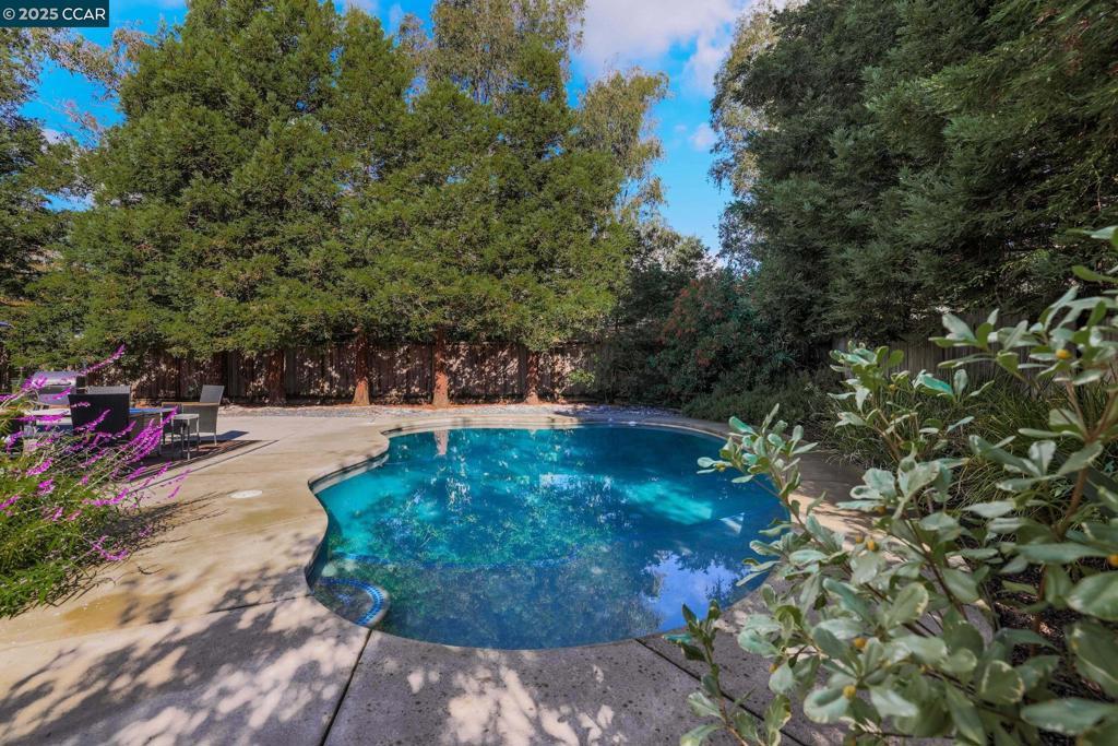 Welcome to this beautiful single-story home in Benicia home offering bright, open living spaces and a stunning backyard retreat. The living room features beautiful cherry hardwood floors, vaulted ceilings and a wood-burning fireplace; which flows seamlessly into the formal dining room—ideal for hosting and everyday living. The kitchen is complete with stainless steel appliances, a new induction stove, fridge, dishwasher and canned lighting. The home offers 3 bedrooms and two tastefully updated bathrooms. Spacious walk-in closet in the primary suite for extra storage. Additional conveniences include a dedicated laundry area, an ADT security system, a brand-new Nest thermostat, new water heater, new subpanel and leased solar to help reduce monthly utility costs. The backyard is a true highlight of the property, featuring a sparkling pool and hot tub. Gorgeous trees line the perimeter of the backyard for additional privacy. Sitting at the end of a cul-de-sac, this home is close to nearby parks, shops, and top-rated Benicia schools!