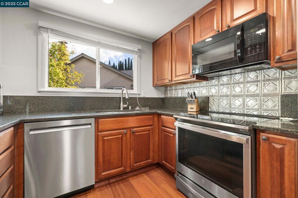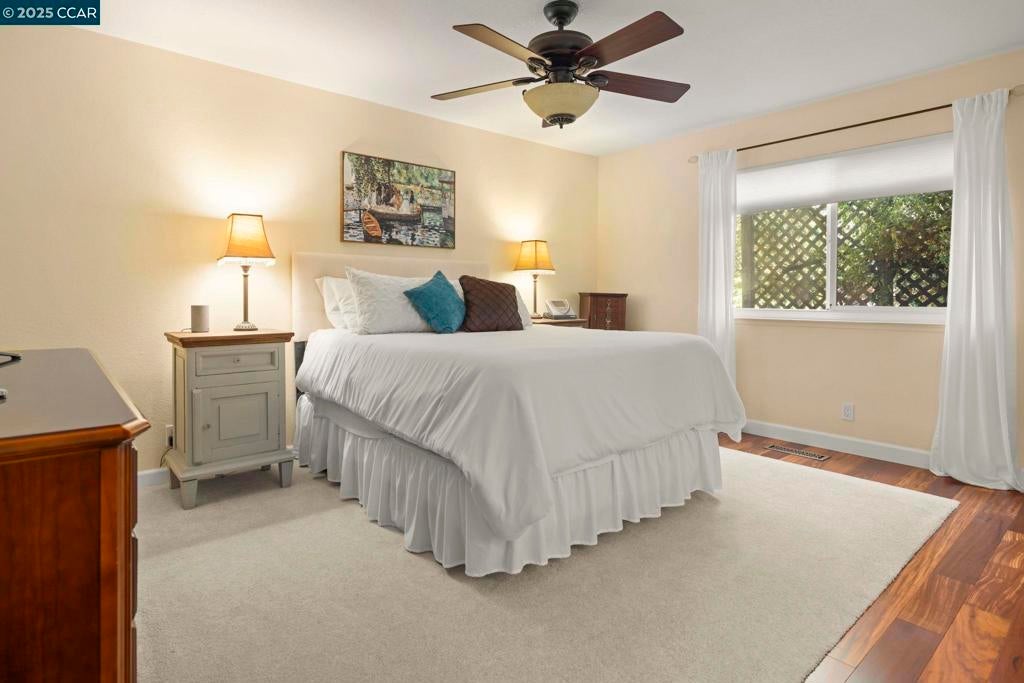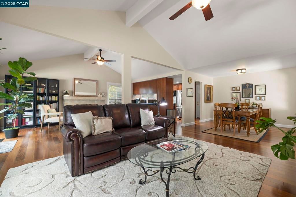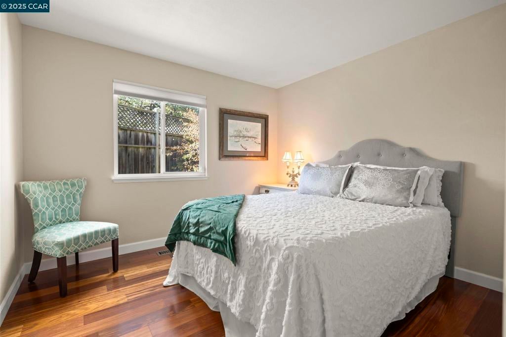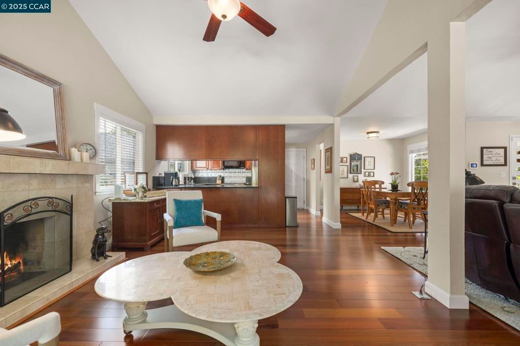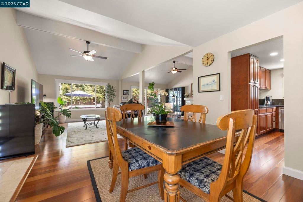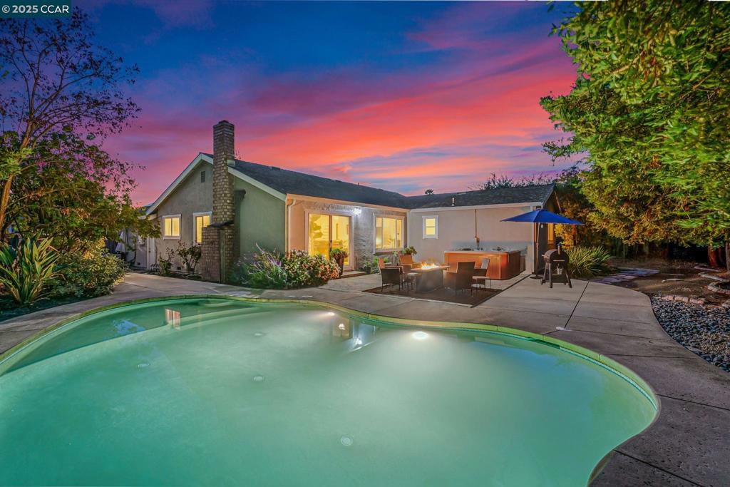 Welcome to this beautiful single-story home in Benicia home offering bright, open living spaces and a stunning backyard retreat. The living room features beautiful cherry hardwood floors, vaulted ceilings and a wood-burning fireplace; which flows seamlessly into the formal dining room—ideal for hosting and everyday living. The kitchen is complete with stainless steel appliances, a new induction stove, fridge, dishwasher and canned lighting. The home offers 3 bedrooms and two tastefully updated bathrooms. Spacious walk-in closet in the primary suite for extra storage. Additional conveniences include a dedicated laundry area, an ADT security system, a brand-new Nest thermostat, new water heater, new subpanel and leased solar to help reduce monthly utility costs. The backyard is a true highlight of the property, featuring a sparkling pool and hot tub. Gorgeous trees line the perimeter of the backyard for additional privacy. Sitting at the end of a cul-de-sac, this home is close to nearby parks, shops, and top-rated Benicia schools!