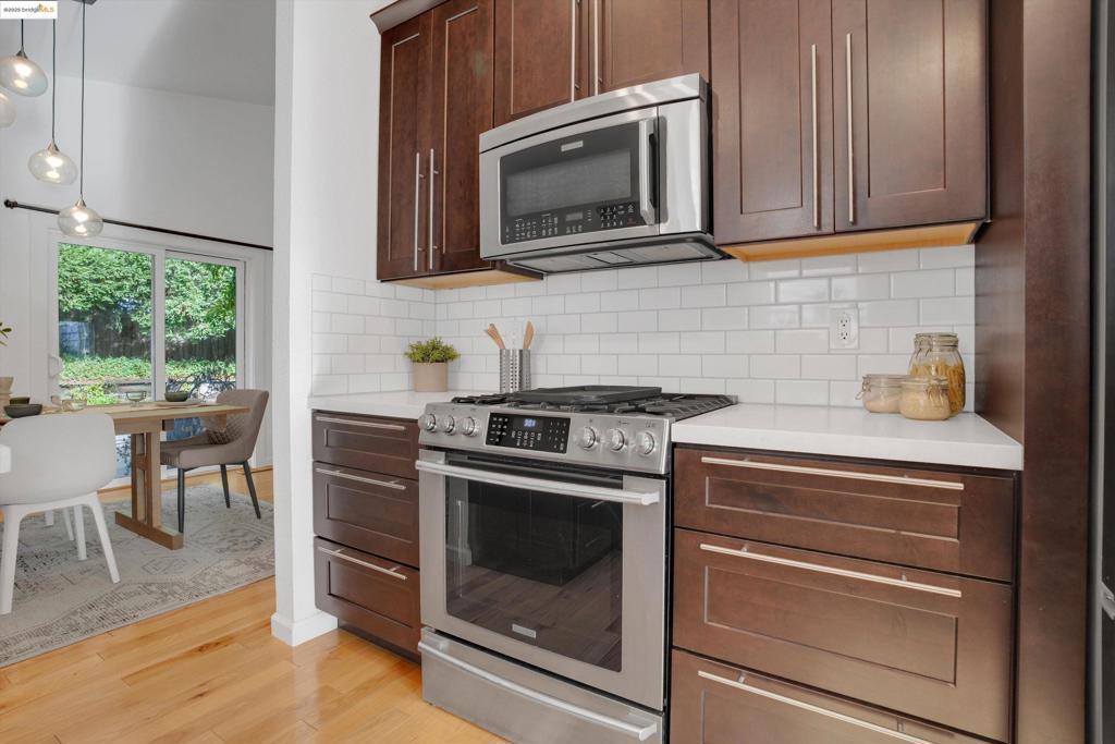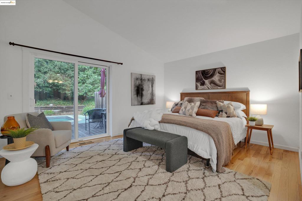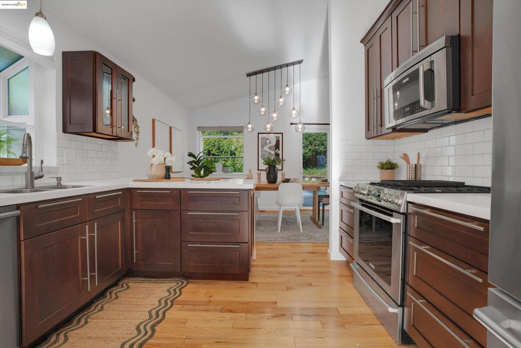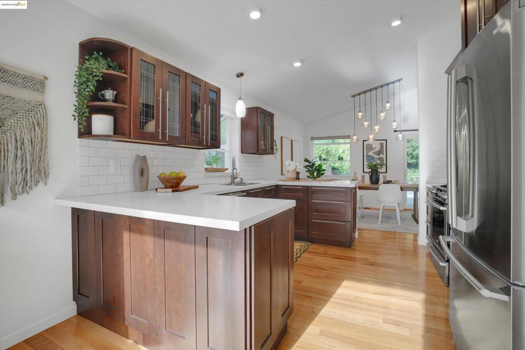 Nestled in a serene Pinole Valley cul-de-sac, this beautifully updated single-family home offers stunning park and ridge views from one of the neighborhood’s most desirable lots. Built in 1985 and thoughtfully modernized, the home features vaulted ceilings, skylights, and an airy, light-filled layout that enhances its contemporary ranch-style design. The remodeled chef’s kitchen showcases quartz countertops, subway tile backsplash, and stainless steel appliances, opening to multiple dining spaces including a formal dining room, breakfast nook, and convenient counter seating. Elegant hardwood floors flow throughout, while the spacious living room centers around a striking floor-to-ceiling fireplace. Two bathrooms elevate everyday comfort, and the primary suite offers direct access to the backyard deck. Perfect for relaxing or entertaining, the private backyard features a sparkling swimming pool and room for seasonal gatherings. Additional highlights include dual-pane windows, an interior laundry room, and a spacious two-car garage. This exceptional 3-bed, 2-bath, 1,436 sq ft home blends style, comfort, and location. An incredible opportunity in Pinole Valley.