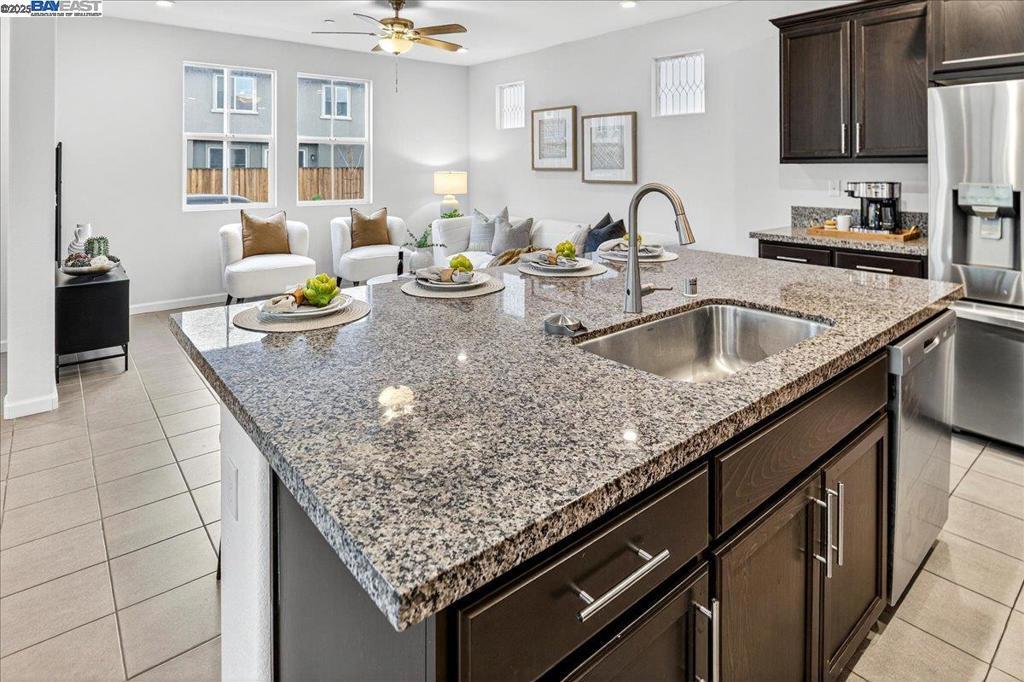 Welcome to Vista Del Mar II, where comfort, style, & modern living come together effortlessly. With 4 bedrooms & 3 full bathrooms, there’s room for everyone. 1 BEDROOM and 1 BATH on the first level—ideal for guests, extended family, or a home office. Located in the heart of Pittsburg, this newer home blends contemporary design with practical everyday convenience, creating a space that truly feels like “the one.” Step inside & instantly feel at home with an open, airy layout filled with natural light, modern lighting, & thoughtful touches throughout. includes Leased SOLAR. The kitchen-family room combo is the heartbeat of the home—perfect for gatherings, casual mornings, or cozy evenings in. The kitchen features granite countertops, a spacious island, stainless steel appliances, recessed lighting, large pantry, plus a lovely eat-in kitchen nook that makes every meal feel warm and inviting. Upstairs, a bright loft offers extra space for a playroom, gym, office, or lounge. The large primary suite is a true retreat with plenty of space to unwind, while the additional bedrooms are equally spacious and comfortable. Step outside in your own Backyard gardening, outdoor Dinning, Dedicated laundry room makes chores a breeze, close to parks & trails! Open House Sat.& Sun. 1-4pm