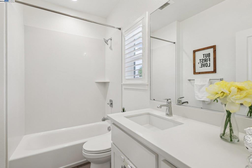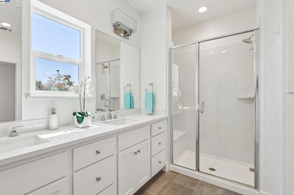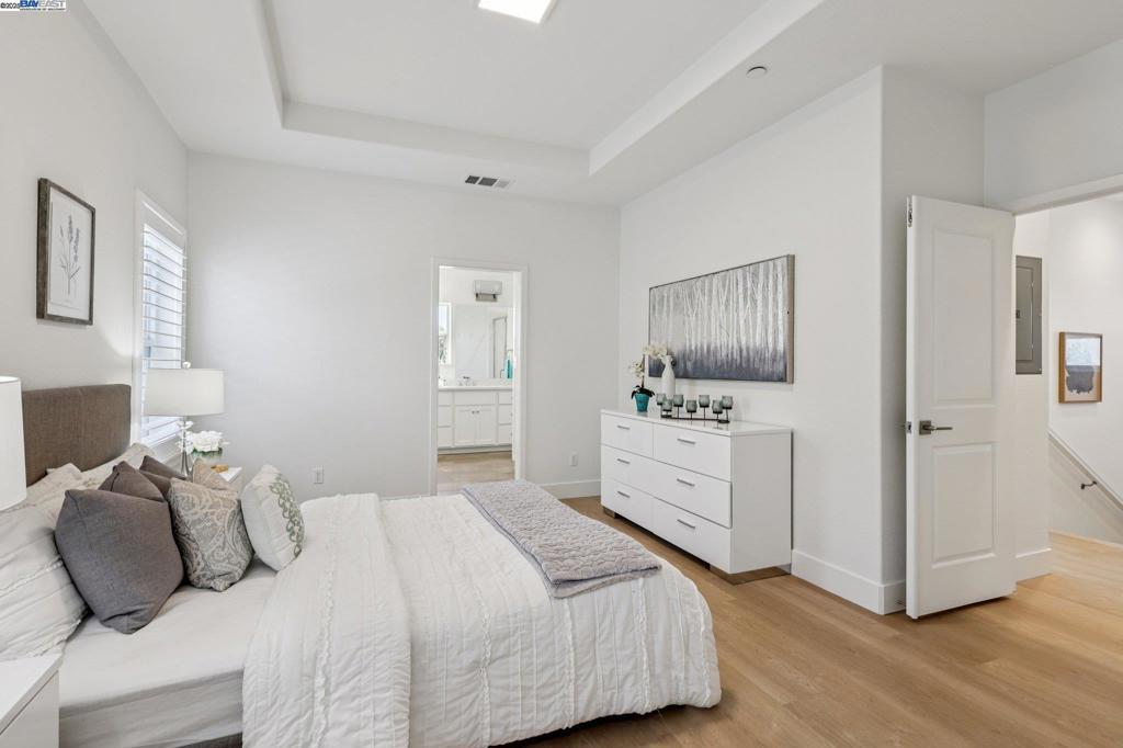 Discover modern living just moments from downtown Livermore in this stylish north-facing home built in 2018. Boasting a versatile floor plan, the main level features a convenient bedroom and full bath—ideal for guests or multi-generational living—alongside newer luxury vinyl plank flooring and dual pane windows throughout. The updated kitchen shines with a gas cooktop, slab stone countertops, and an open layout perfect for entertaining. Upstairs offers three additional bedrooms and a full bath, including a spacious primary suite with a large walk-in closet and a luxurious bath featuring a glass-enclosed shower and soaking tub. The detached garage provides potential for an in-law unit or ADU addition. Enjoy walkability to downtown Livermore’s shops and restaurants and a quick commute via the nearby ACE Train to Silicon Valley.