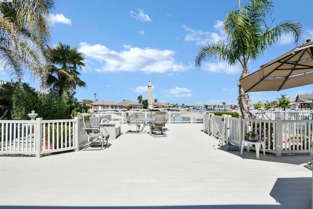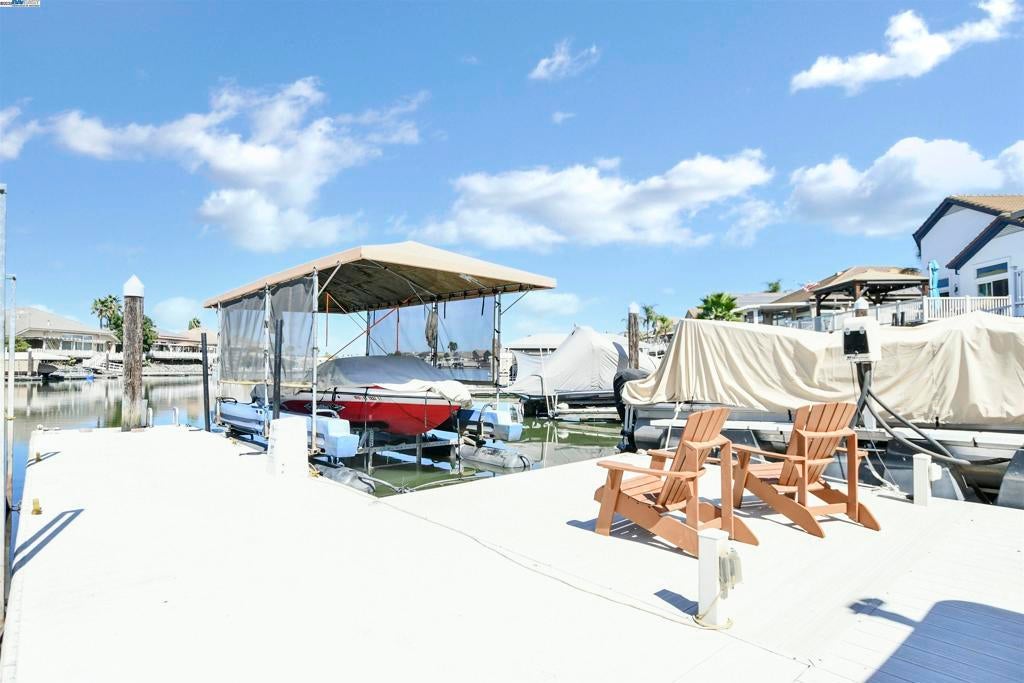 DISOCOVERY BAY LIVE WHERE YOU PLAY - DESIRABLE MIRA MAR FLOOR PLAN WATERFRONT SINGLE STORY WITH FABULOUS WATER VIEWS! DESIRABLE FLOOR PLAN - 2099 SQ FT W/3 BEDROOMS & 2 FULL BATHS -3 CAR GARAGE - ENTERTAINER'S BACK DECK W/LARGE BOAT SLIP - Open floor plan w/high ceilings - Formal Living & Dining area - Spacious family room w/fireplace opens to kitchen - Chef's kitchen offers granite counters, abundance of cabinets, Center-Island, double ovens, gas stove, eat at bar + casual dining area all with water views - Primary w/double entry door, spa like bath with jetted tub, separate shower, dual vanity's, walk-in closet & slider door to back deck - Huge back deck (Entertainer's Delight), landscaped side yards with storage shed, Private boat dock with large side mount boat hoist - Enjoy fishing, boating, Golf Course nearby - All this and more...