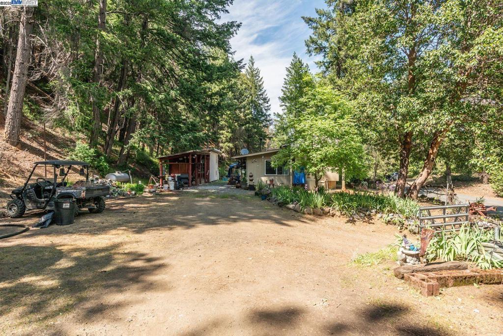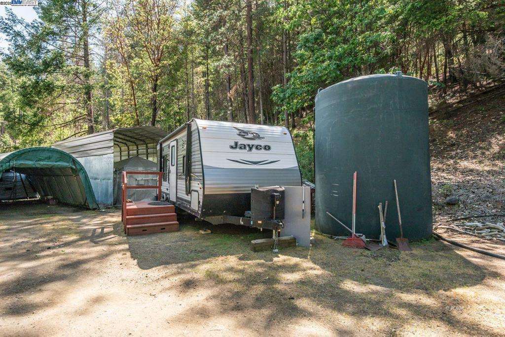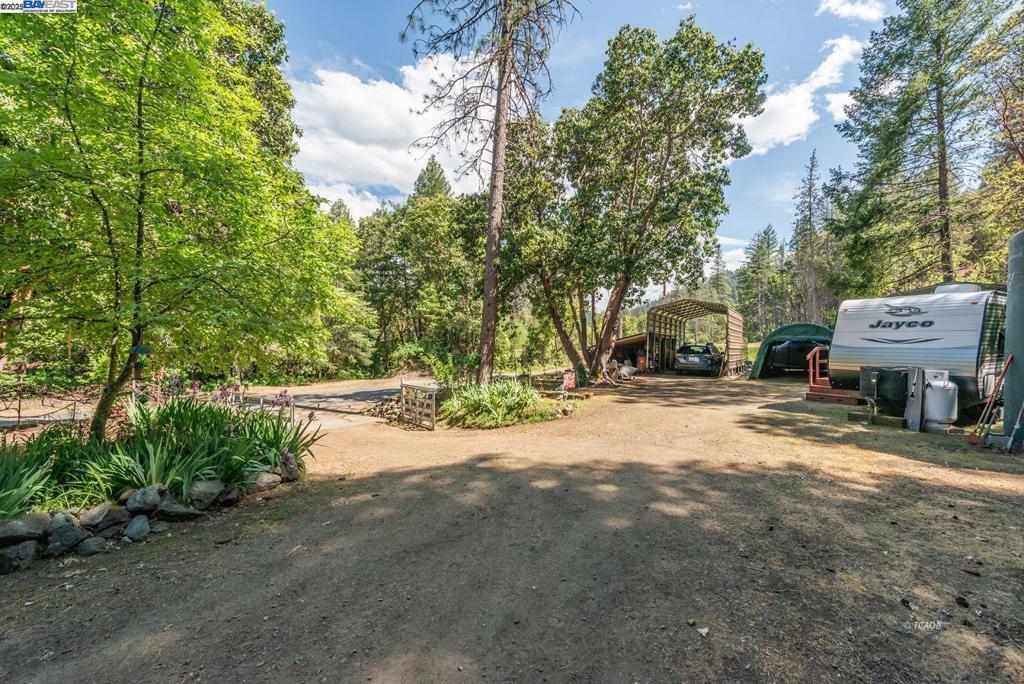 Escape to your own Mountain Retreat: 28.25 acres with creek frontage, gushing spring, and panoramic views and so close to the Trinity River. Discover peace and privacy on the stunning property offering year-round creek, breath-taking Mountain views, and a host of valuable amenities. Nestled in nature this land boast a 12 X 60 manufactured home with a 200 sf addition under a Ramada, featuring a 2 bedroom and 1 bathroom with a dog door and dog kennel attached for your furry friends, perfect for full time living or a serene getaway. Enjoy a bunkhouse with cozy wood stove & a sleeping loft, two covered carports, two 16 X 30 RV metal carports, an abundance of water resources- including a gushing spring, two 5,000 gallon water tanks, two 4,000 gallon water tanks. Take in the quite beauty of your surroundings from any corner of the land, whether relaxing or tending to a garden or if you're seeking self-sufficiency, a mountain escape, or a homesteader's paradise, this property delivers it all.