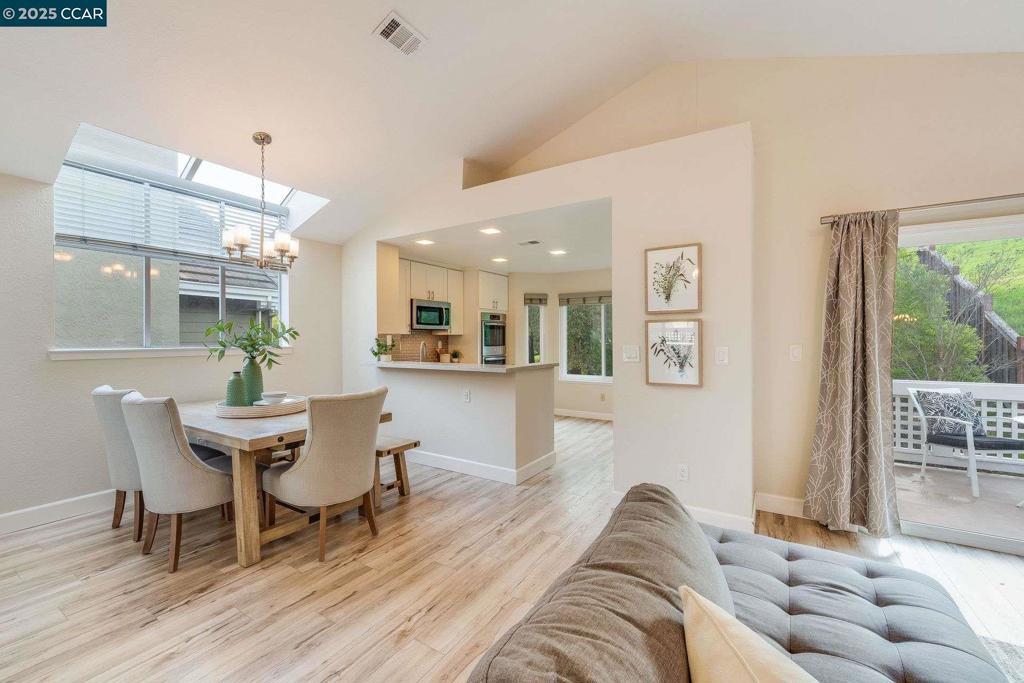 Northeast facing detached home in Danville Ranch at the end of a cul-de-sac! Amazing quiet location yet minutes from shopping, COSTCO and freeway access. Great yard that backs to open space with a large deck for entertaining, spacious lawn area & garden beds. There is 2 Bedrooms/1Bath on the ground floor with only a few steps from the garage. The primary bedroom has vaulted ceilings, walk-in closet, front balcony and updated full bathroom with dual sink vanity, soaking tub and custom tile shower. The kitchen has white shaker cabinets, Quartz counters, tile backsplash, SS appliances, gas cooktop, double oven and microwave. The dining area is filled with natural light from the large windows and is adjacent to the living room with fireplace and slider to rear balcony with views. There is an additional family room downstairs with fireplace and 8ft slider to the backyard. Recent upgrades included newer HVAC system, water heater, luxury vinyl plank flooring & freshly painted exterior. California Chateau at Danville Ranch features community swimming pool, spa, tennis/basketball courts, playground & clubhouse.