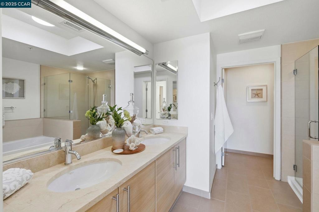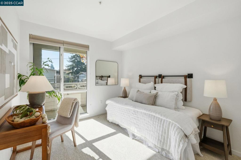 With its outlook onto Trinity Avenue, this distinguished Mercer residence offers an exceptional blend of luxury and convenience. This elegantly designed two-bedroom, two-bath condominium features an open, light-filled floor plan. Recently refreshed, the home includes new interior paint, plush carpeting, re-grouted kitchen and bathroom surfaces, and some updated light fixtures. The gourmet kitchen is appointed with granite countertops, a Sub-Zero refrigerator, and premium Bosch appliances. The primary suite boasts a generous walk-in closet and an en-suite bath complete with a serene soaking tub. The inviting living room is anchored by a charming gas fireplace. The laundry room offers a full-size washer and dryer along with ample cabinetry for storage. The Mercer provides an array of resort-style amenities, including an expansive lap pool, spa, outdoor barbecue area, and fireplace. Residents also enjoy access to a spacious clubhouse and well-equipped fitness center. Situated just steps from downtown Walnut Creek, the location places you within easy reach of acclaimed restaurants, upscale boutiques shops. Freeway access is close at hand, and BART is only a short walk away.
