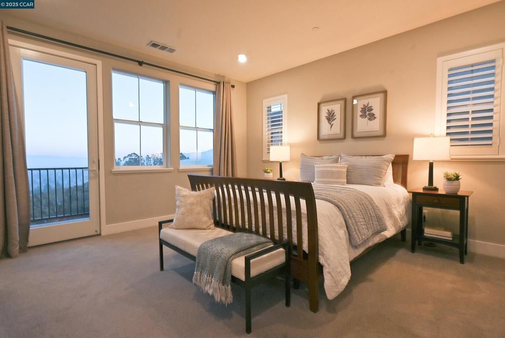 Experience unparalleled luxury in one of San Ramon's premier, newer communities (Built 2018). Prepare to be captivated! This incredibly upgraded two-story home boasts one of the most spectacular 180-degree sweeping valley views in all of San Ramon. The breathtaking panorama is visible from every key space: the gourmet kitchen, the spacious family room, and the primary suite's private balcony. The bright, light-filled interior features an open-concept design centered around a huge, open kitchen flowing seamlessly into the family room. Crucially, the main level includes a full bedroom and bathroom—perfect for guests or multi-generational living. Upstairs, you will find three additional generous bedrooms and a beautiful open loft space. The private yard is designed for ultimate relaxation and entertaining, featuring elegant stone pavers throughout, a bubbling hot tub, and a cozy, custom stone fire pit. This tranquil property offers the perfect balance: complete privacy and quiet while being just moments from the freeway for an easy commute. Located near award-winning schools and fantastic local shopping and dining. This is a competitive opportunity for luxury living!