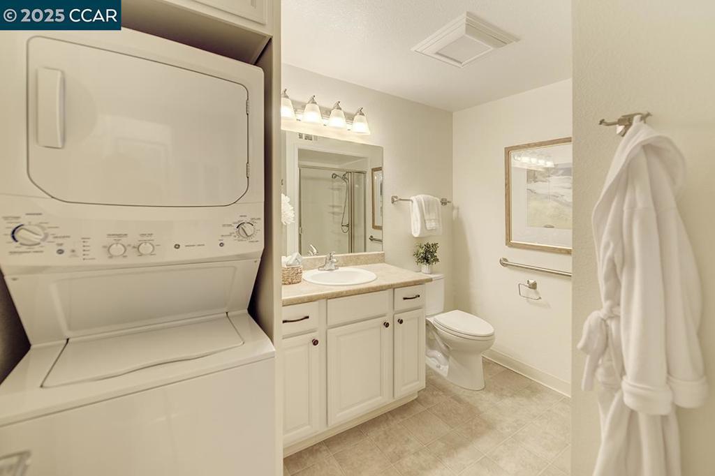 This beautiful Sonoma model offers lovely vistas, abundant natural light, and an open deck perfect for relaxing and enjoying the changing colors of the surrounding trees throughout the seasons. The entire building was rebuilt in 2013, giving you the peace of mind of modern construction and high-quality upgrades. You will appreciate the newer electrical and plumbing, a tankless water heater, high-efficiency furnace, dual-pane windows, fire sprinklers, and noise-reduction insulation—all designed for comfort, efficiency, and safety. The spacious bathroom features a walk-in shower and a convenient stacked washer and dryer. Rossmoor is a premier active-adult community, residents enjoy an exceptional array of amenities including six clubhouses, two golf courses, tennis courts, four swimming pools, a state-of-the-art fitness center, restaurant, theater, and so much more. A move-in-ready home at an incredible price—don’t miss this amazing opportunity!