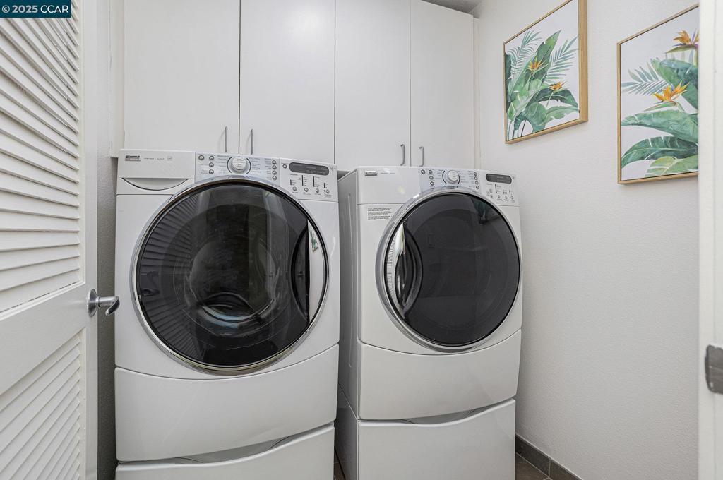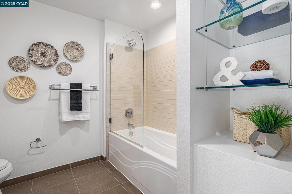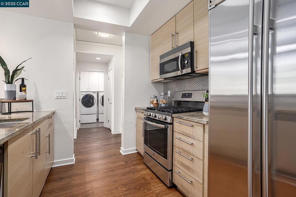 Welcome to this bright 2-bedroom, 2-bath, South facing Mercer condominium in the middle of downtown Walnut Creek, close to everything. Flooded with natural light and sitting up several feet from the street, this “like-new” unit has an modern vibe and a its own entrance from the back of the unit. Ideal for dog owners, no need to walk through the building to get in and out. And there is a fenced, over-sized patio that faces Trinity Avenue. Throughout the attractive interiors there is newer luxury vinyl flooring in warm walnut along with new designer white paint. Grout in the bathrooms and kitchen have been professionally refurbished as part of the recent upgrades. With an open layout, the kitchen overlooks the living room with a SubZero Refrigerator, quiet Bosch dishwasher, stone counters, microwave, and a gas range and oven. Everything a home chef needs to create yummy meals. Next to the kitchen is a laundry room with a full-size washer & dryer and storage cabinets. Exceptional complex amenities include: a large lap pool, spa, a state-of-the-art gym, outdoor BBQ, and a large multi-purpose room. Steps away, EXCELLENT RESTAURANTS, ECLECTIC shops and the Regional Center for the Arts offer plenty of diversions in this beautiful urban environment.