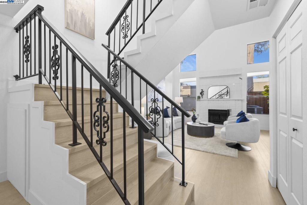 Welcome to this beautifully updated Cedar Glenn townhome, offering the comfort and feel of a single family home. This spacious 2 story residence features 3 bedrooms, 2.5 bathrooms, and an attached 2 car garage. The bright living room boasts soaring vaulted ceilings, tall windows, and a cozy fireplace. The modernized kitchen includes quartz countertops and is well designed for everyday living and entertaining. The spacious primary suite includes a private deck perfect for morning coffee or unwinding at the end of the day. Additional highlights include double pane windows, central AC with smart controls, and a convenient laundry area with washer, dryer, and refrigerator included. The fenced patio provides a private outdoor space ideal for relaxing, gardening, or enjoying fresh air. The Cedar Glenn community features a clubhouse, heated pool, and playground. Ideally located near Newark Lake with easy access to Hwy 84, Hwy 880, the Dumbarton Bridge, BART, Meta, and major Silicon Valley employers. Minutes from Challenger School, Stratford School, Costco, 99 Ranch, NewPark Mall, and a wide selection of restaurants and shopping. HOA includes water. A must see!