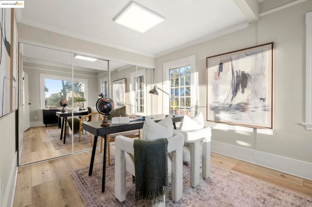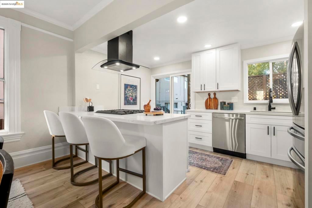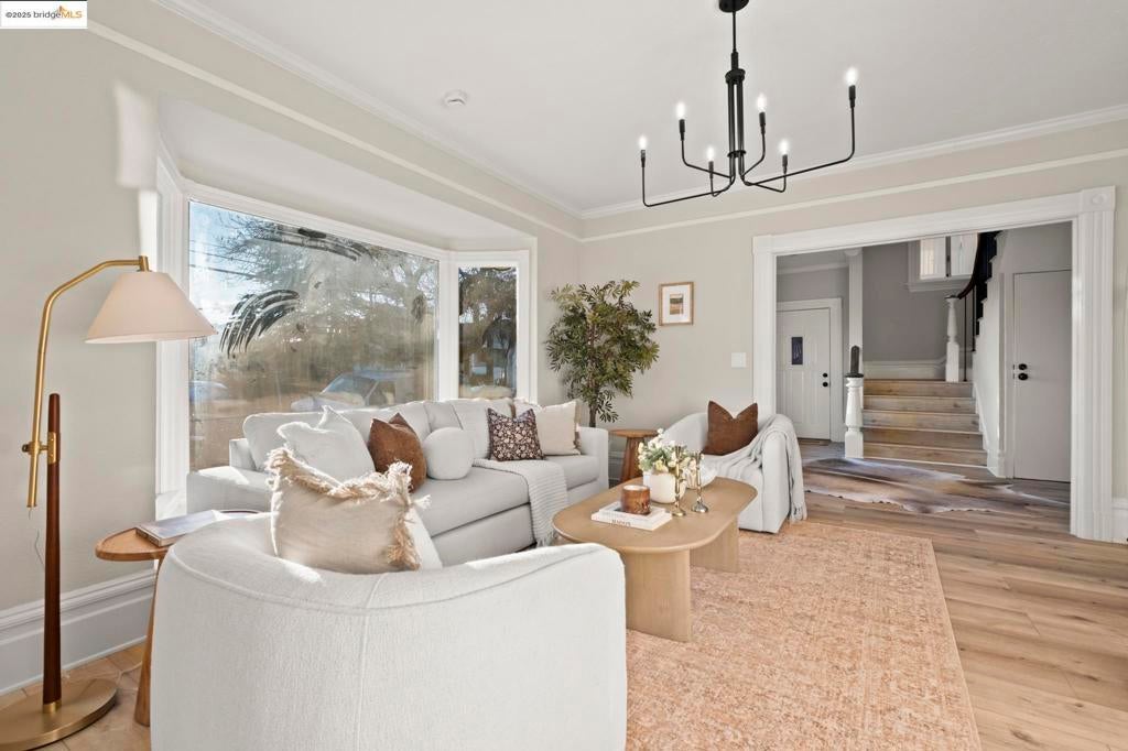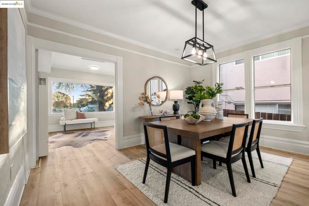 Welcome to this expansive contemporary Craftsman home featuring five bedrooms and three bathrooms, plus a separate two bedroom, two bathroom in-law unit! Step through the dramatic entryway into an inviting formal living room, highlighted by an elegant fireplace that serves as the focal point of the space. The chic, updated open kitchen seamlessly connects to the formal dining room, creating an ideal layout for gatherings. Just off the kitchen, a large deck offers the perfect setting for entertaining or enjoying Oakland’s beautiful weather. The main level includes two spacious bedrooms and a fully updated bathroom. Upstairs, you’ll find three additional large bedrooms, including a serene primary suite, along with two more remodeled bathrooms. The lower level features a generous two-bedroom, two-bathroom in-law unit with its own private entrance and dedicated washer/dryer hookups, ideal for multi-generational living, guests, or additional income opportunities. Outside, don’t miss the enormous backyard and the abundance of parking this property offers. This home effortlessly blends traditional charm with contemporary living, truly a rare find! OPEN SUN 2-4