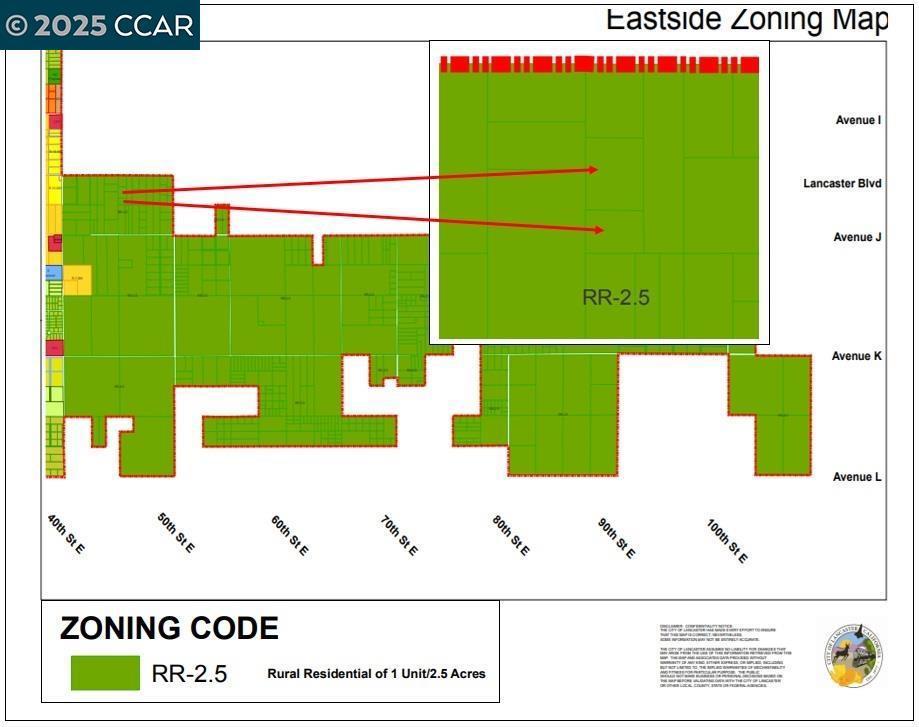 Excellent adjacent parcels – APN# 3150-002-005 and 006 – adding up to 7.25 acres in east Lancaster can be sold together or separately! Zoning is RR2.5 (Rural Residential – One Dwelling per 2.5 acre lot). Parcels are located east of Lancaster Baptist College at 40th Street E and are one parcel south of Lancaster Blvd. Parcels offer an excellent investment opportunity in immediate path of future growth. All data is provided without verification or warranty. Buyer to verify all data and suitability for Buyer's intended use. (Longitude/Latitude: 34.693986°/-118.049575°)