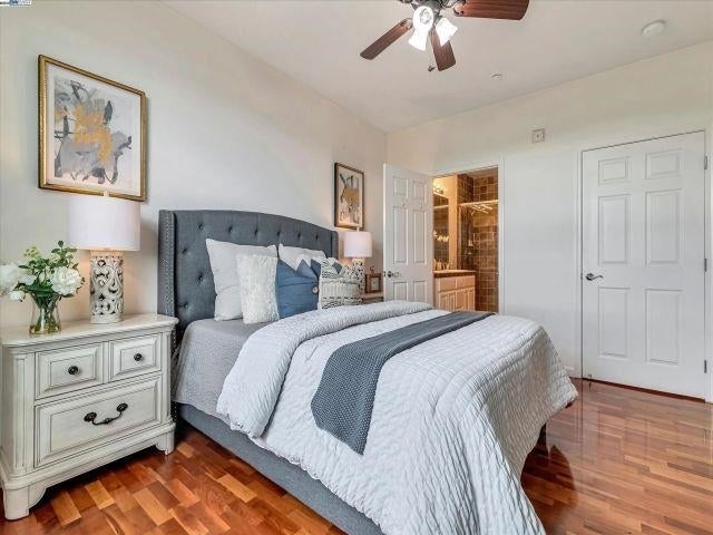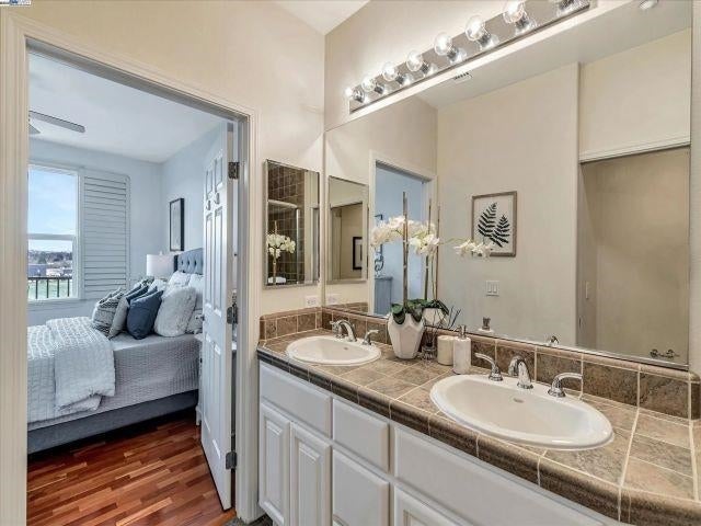 The Terraces at Dublin Ranch are luxurious condominiums with a lot to offer. Toll Brothers built these in 2004 and it boasts a gated community, security patrol, and other security and access features. It’s a corner unit that has a nice open entry from the elevator. With a 9-foot ceiling, you get a very open feeling with lots of natural light with generous windows that give you a view of the hills to the south. In addition to all hardwood cherry floors, you have a fireplace, recessed lights, a gas stove, surround by a Poppy Jasper granite countertop. The granite counters and the cabinets, as well as the tile all have a nice contrast, and your unit also comes with a washer and dryer. You even get a trash chute, and two secured parking spaces that are side by side. The clubhouse has many stunning amenities like a kitchen, fireplace, gym, heated pool, spa and is something that you shouldn’t pass up. Dublin Ranch has a lot to offer, and because of its location near medical, shopping, restaurants, theaters, and easy access to 580, it is a must see.