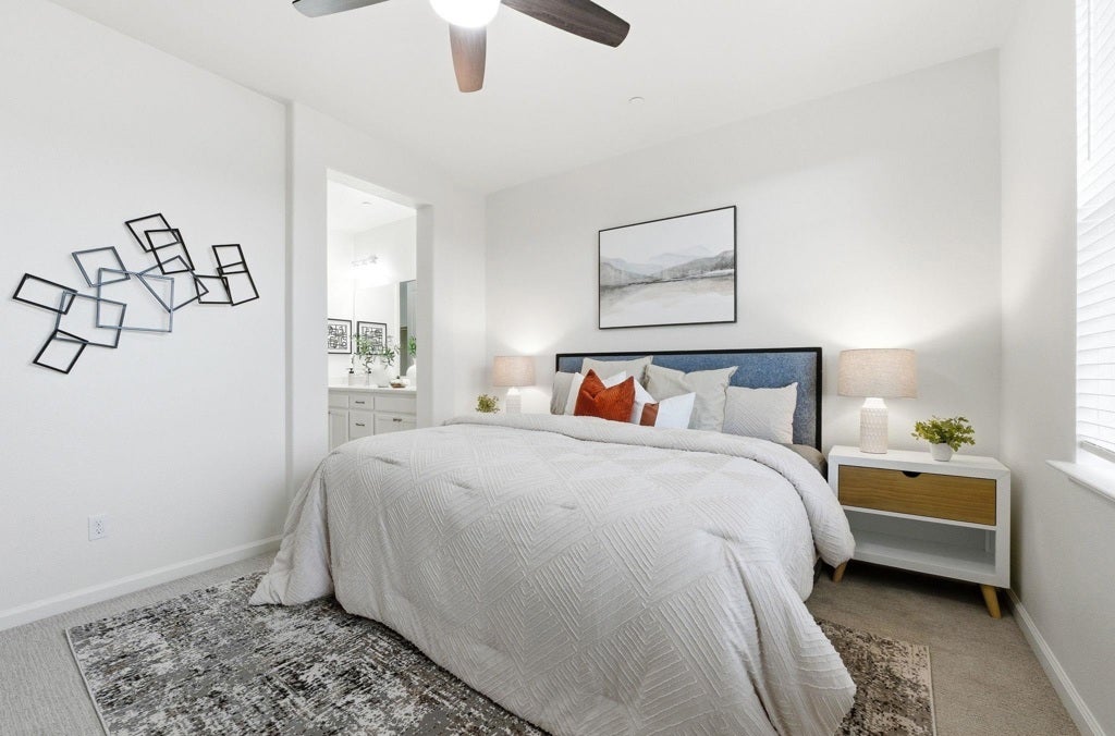 What a GEM! Beautifully upgraded townhome-style-condo located in desirable Trio @ Jordan Ranch * Recent improvements include fresh interior paint & new carpet throughout * Bedroom + full bath on the 1st level * Fabulous great room on the 2nd level offers gleaming hardwood floors, gourmet kitchen with quartz counters, white shaker cabinets & S/S appliances * 2 balconies & several windows provide an abundance of natural light! Main level also features a den/office with new double doors * 3rd level features 2 suites; primary suite has dual sink vanity, spacious stall shower and a walk-in closet * Incredible storage available throughout - custom closet organizers, additional linen/laundry cabinets, built-in garage cabinets + overhead rack system * Infrastructure improvements include multi-zone heating + A/C, tankless water heater, water softener, pre-wired rooms, dimmer switches & security cameras * Side-by-side 2 car garage, epoxy finished floor * Excellent neighborhood and location; attendance area for top schools!