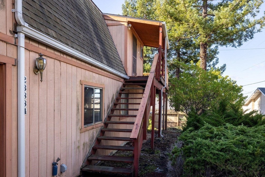 Fantastic Custom Gambrel Style Fairview home in the Hayward Hills! Bring your imagination and a hammer to this diamond in the rough nestled in the desirable Hayward Hills within the unincorporated area of Fairview. This custom fixer offers an exceptional opportunity to create your dream home. Major improvements are already in place, including a newer roof, repaired decks, and a solid slab foundation, now it just needs your design vision to make it shine. The main living level features soaring cathedral ceilings, a spacious kitchen that opens seamlessly to the dining and living rooms, and a convenient half bath. Step outside to two separate decks and enjoy lush, verdant surroundings with urban views, perfect for relaxing or entertaining. Downstairs, you’ll find three additional bedrooms, including a primary suite with an ensuite bath and generous closet space, a laundry area and workshop with garage access. Set back on a flag lot, the home sits away from the street, creating a private oasis surrounded by mature trees. This sweet fixer is full of potential and waiting for the right buyer to make it their own.